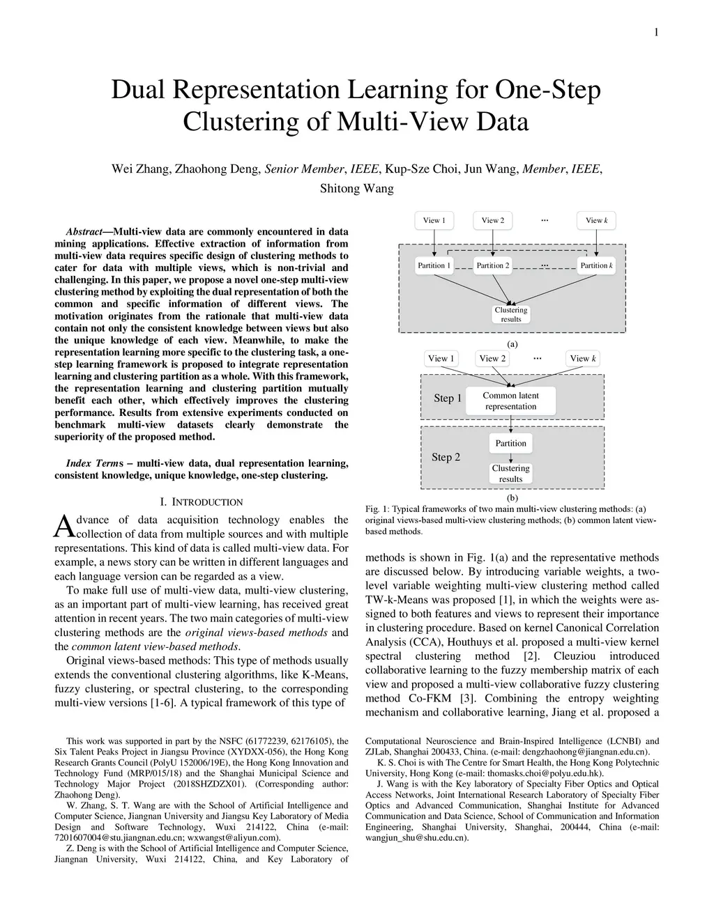 Dual Representation Learning for One-Step Clustering of Multi-View Data