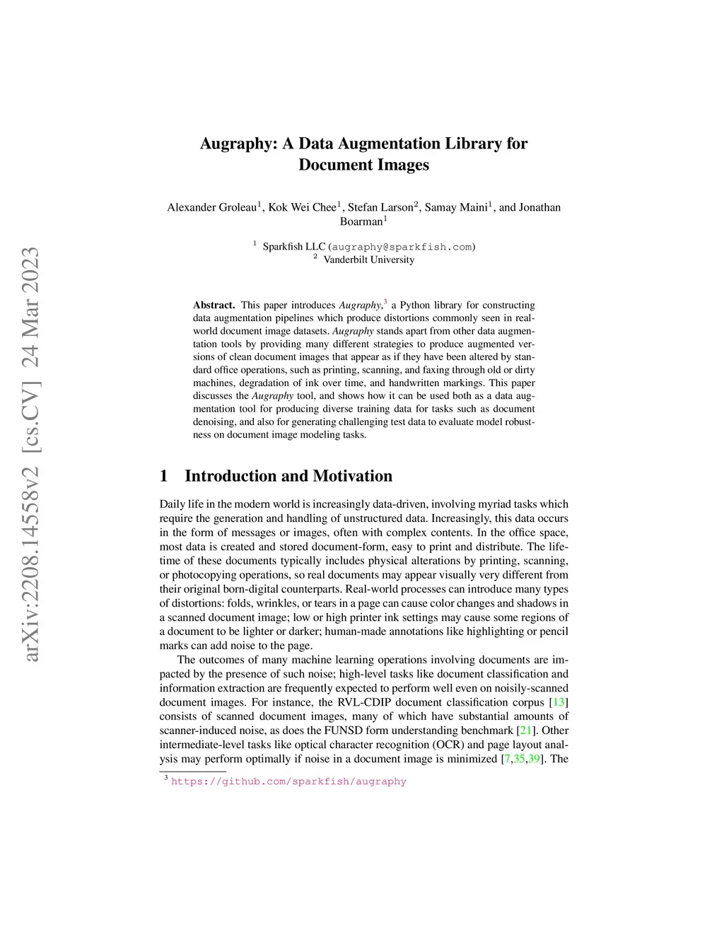 This paper introduces Augraphy, a Python library for constructing data augmentation pipelines which produce distortions commonly seen in real-world document image datasets. Augraphy stands apart from other data augmentation tools by providing many different strategies to produce augmented versions of clean document images that appear as if they have been altered by standard office operations, such as printing, scanning, and faxing through old or dirty machines, degradation of ink over time, and handwritten markings. This paper discusses the Augraphy tool, and shows how it can be used both as a data augmentation tool for producing diverse training data for tasks such as document denoising, and also for generating challenging test data to evaluate model robustness on document image modeling tasks.