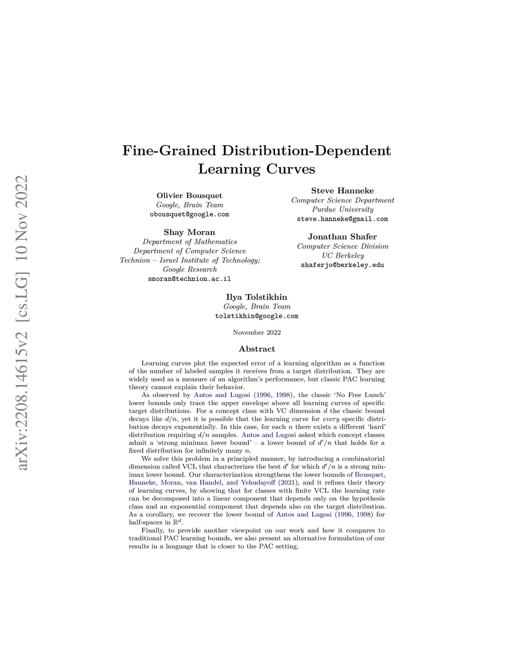 Learning curves plot the expected error of a learning algorithm as a function of the number of labeled samples it receives from a target distribution. They are widely used as a measure of an algorithm's performance, but classic PAC learning theory cannot explain their behavior. As observed by Antos and Lugosi (1996 , 1998), the classic `No Free Lunch' lower bounds only trace the upper envelope above all learning curves of specific target distributions. For a concept class with VC dimension the classic bound decays like , yet it is possible that the learning curve for \emph{every} specific distribution decays exponentially. In this case, for each there exists a different `hard' distribution requiring samples. Antos and Lugosi asked which concept classes admit a `strong minimax lower bound' -- a lower bound of that holds for a fixed distribution for infinitely many . We solve this problem in a principled manner, by introducing a combinatorial dimension called VCL that characterizes the best for which is a strong minimax lower bound. Our characterization strengthens the lower bounds of Bousquet, Hanneke, Moran, van Handel, and Yehudayoff (2021), and it refines their theory of learning curves, by showing that for classes with finite VCL the learning rate can be decomposed into a linear component that depends only on the hypothesis class and an exponential component that depends also on the target distribution. As a corollary, we recover the lower bound of Antos and Lugosi (1996 , 1998) for half-spaces in . Finally, to provide another viewpoint on our work and how it compares to traditional PAC learning bounds, we also present an alternative formulation of our results in a language that is closer to the PAC setting.