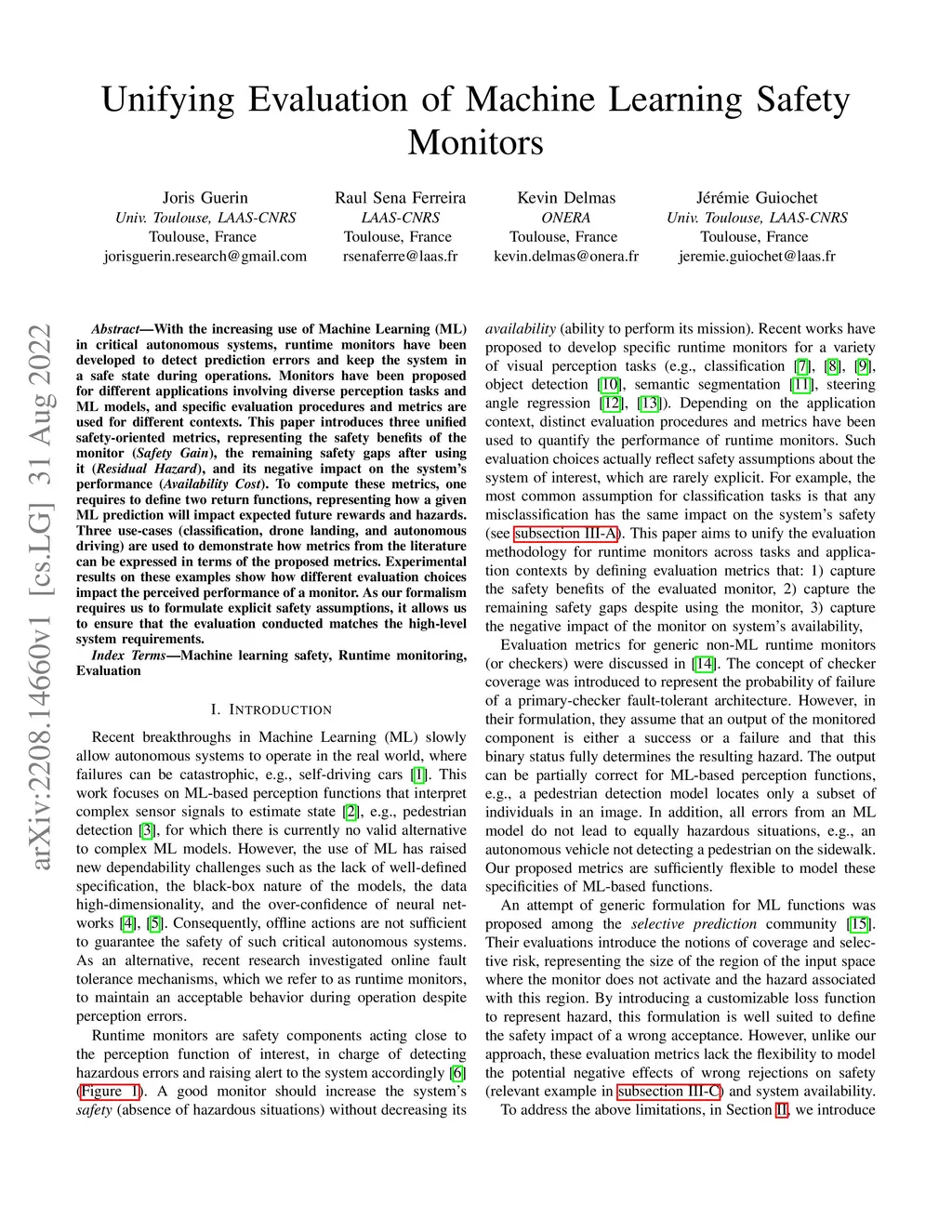 With the increasing use of Machine Learning (ML) in critical autonomous systems, runtime monitors have been developed to detect prediction errors and keep the system in a safe state during operations. Monitors have been proposed for different applications involving diverse perception tasks and ML models, and specific evaluation procedures and metrics are used for different contexts. This paper introduces three unified safety-oriented metrics, representing the safety benefits of the monitor (Safety Gain), the remaining safety gaps after using it (Residual Hazard), and its negative impact on the system's performance (Availability Cost). To compute these metrics, one requires to define two return functions, representing how a given ML prediction will impact expected future rewards and hazards. Three use-cases (classification, drone landing, and autonomous driving) are used to demonstrate how metrics from the literature can be expressed in terms of the proposed metrics. Experimental results on these examples show how different evaluation choices impact the perceived performance of a monitor. As our formalism requires us to formulate explicit safety assumptions, it allows us to ensure that the evaluation conducted matches the high-level system requirements.