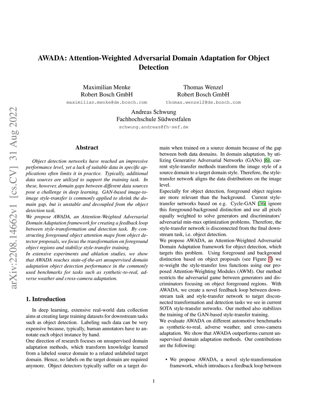 AWADA: Attention-Weighted Adversarial Domain Adaptation for Object