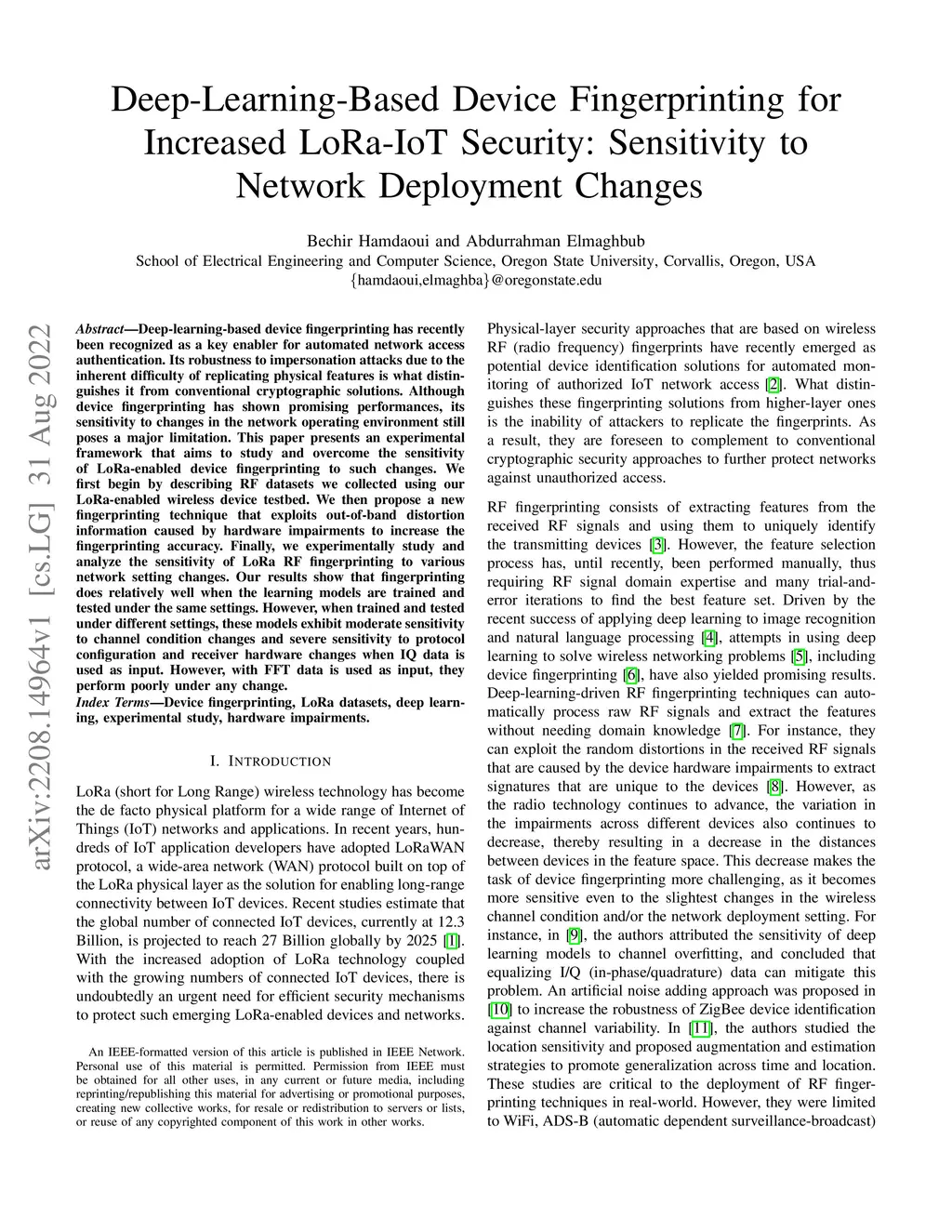 Deep-Learning-Based Device Fingerprinting for Increased LoRa-IoT