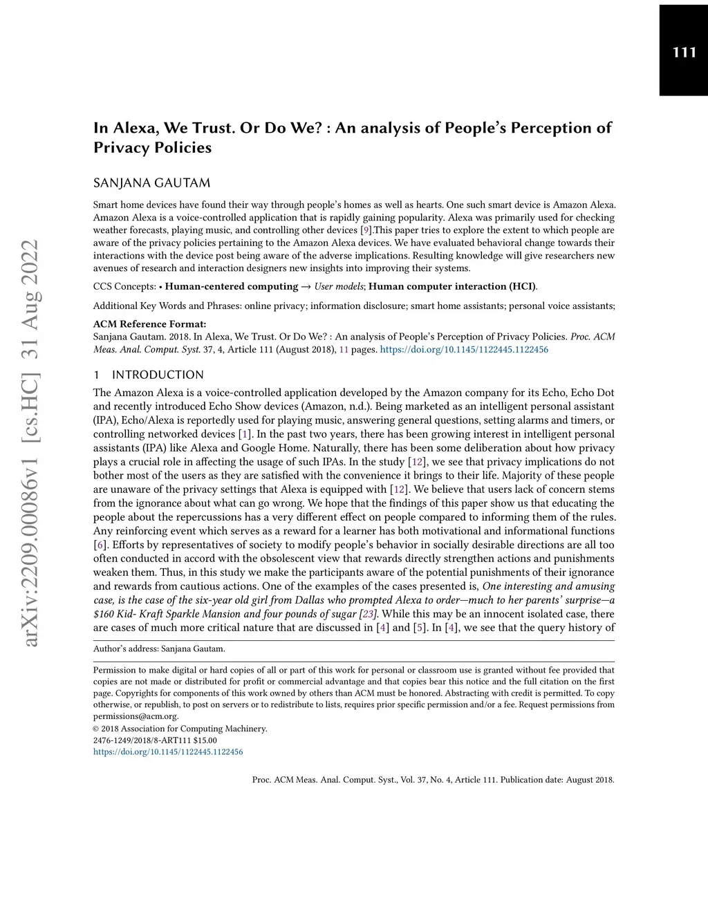 In Alexa, We Trust. Or Do We? : An analysis of People's Perception of