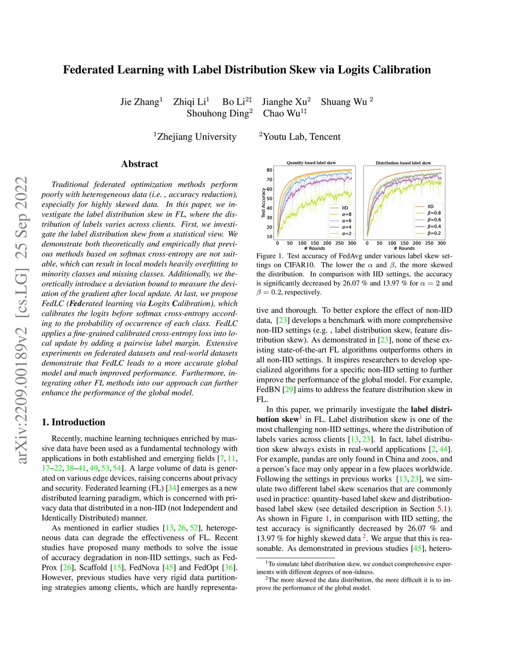 Traditional federated optimization methods perform poorly with heterogeneous data (ie, accuracy reduction), especially for highly skewed data. In this paper, we investigate the label distribution skew in FL, where the distribution of labels varies across clients. First, we investigate the label distribution skew from a statistical view. We demonstrate both theoretically and empirically that previous methods based on softmax cross-entropy are not suitable, which can result in local models heavily overfitting to minority classes and missing classes. Additionally, we theoretically introduce a deviation bound to measure the deviation of the gradient after local update. At last, we propose FedLC (\textbf {Fed} erated learning via\textbf {L} ogits\textbf {C} alibration), which calibrates the logits before softmax cross-entropy according to the probability of occurrence of each class. FedLC applies a fine-grained calibrated cross-entropy loss to local update by adding a pairwise label margin. Extensive experiments on federated datasets and real-world datasets demonstrate that FedLC leads to a more accurate global model and much improved performance. Furthermore, integrating other FL methods into our approach can further enhance the performance of the global model.