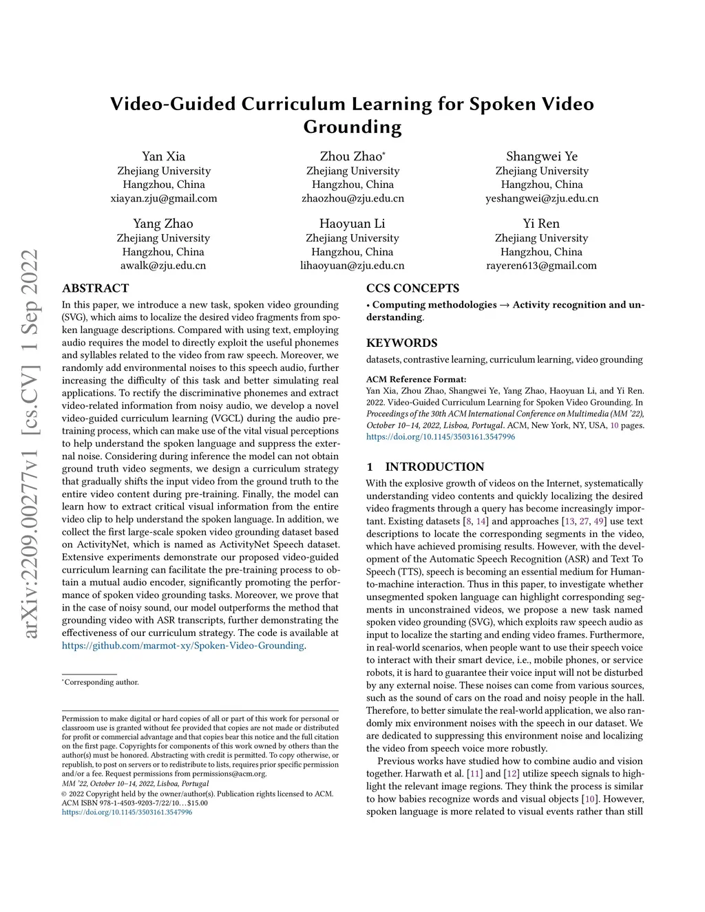 Video-Guided Curriculum Learning for Spoken Video Grounding