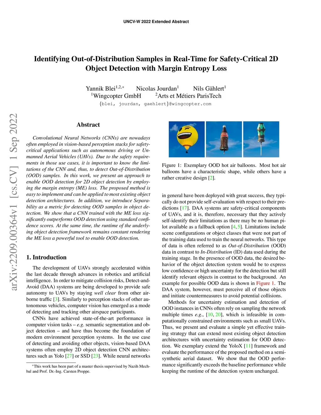 Convolutional Neural Networks (CNNs) are nowadays often employed in vision-based perception stacks for safetycritical applications such as autonomous driving or Unmanned Aerial Vehicles (UAVs). Due to the safety requirements in those use cases, it is important to know the limitations of the CNN and, thus, to detect Out-of-Distribution (OOD) samples. In this work, we present an approach to enable OOD detection for 2D object detection by employing the margin entropy (ME) loss. The proposed method is easy to implement and can be applied to most existing object detection architectures. In addition, we introduce Separability as a metric for detecting OOD samples in object detection. We show that a CNN trained with the ME loss significantly outperforms OOD detection using standard confidence scores. At the same time, the runtime of the underlying object detection framework remains constant rendering the ME loss a powerful tool to enable OOD detection.