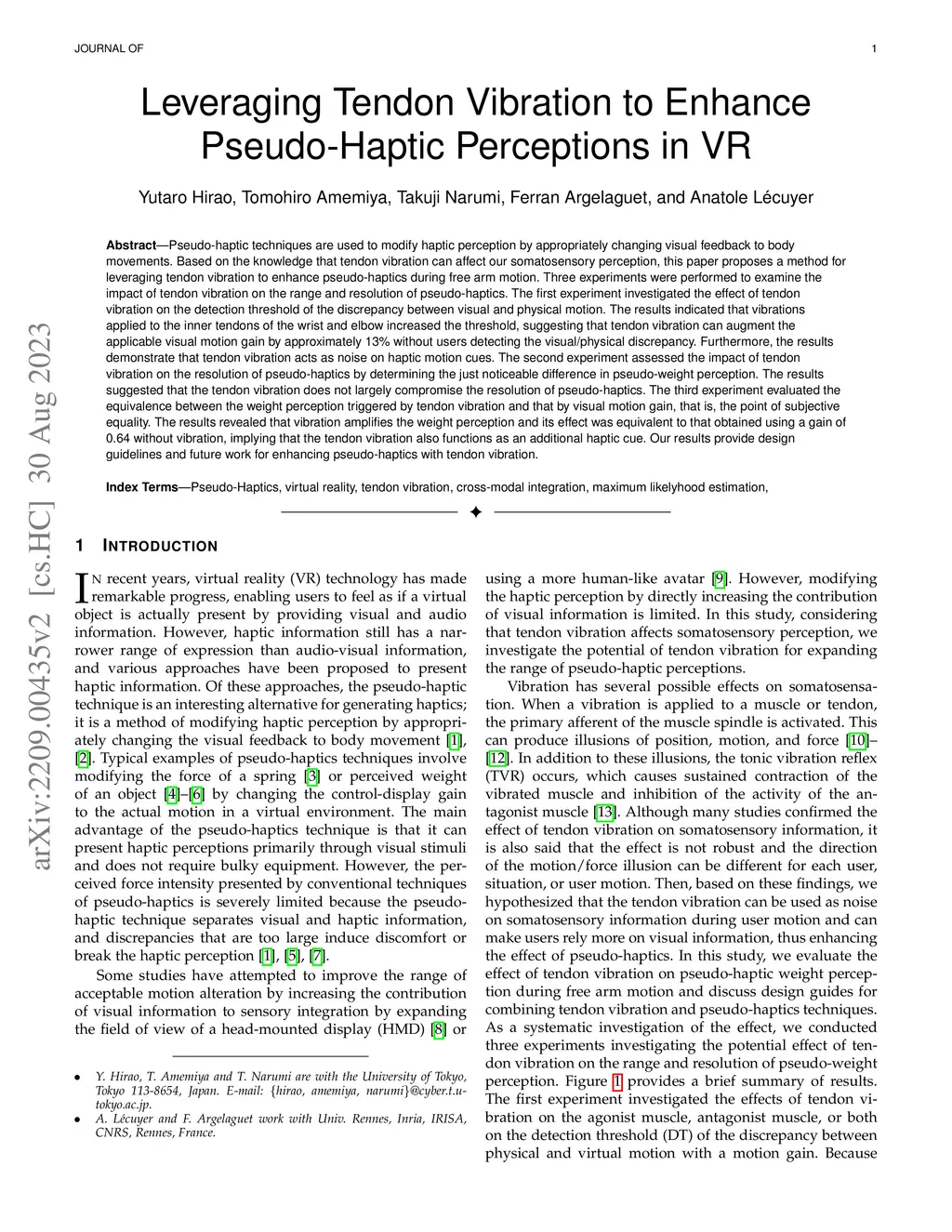 Leveraging Tendon Vibration to Enhance Pseudo-Haptic Perceptions in VR