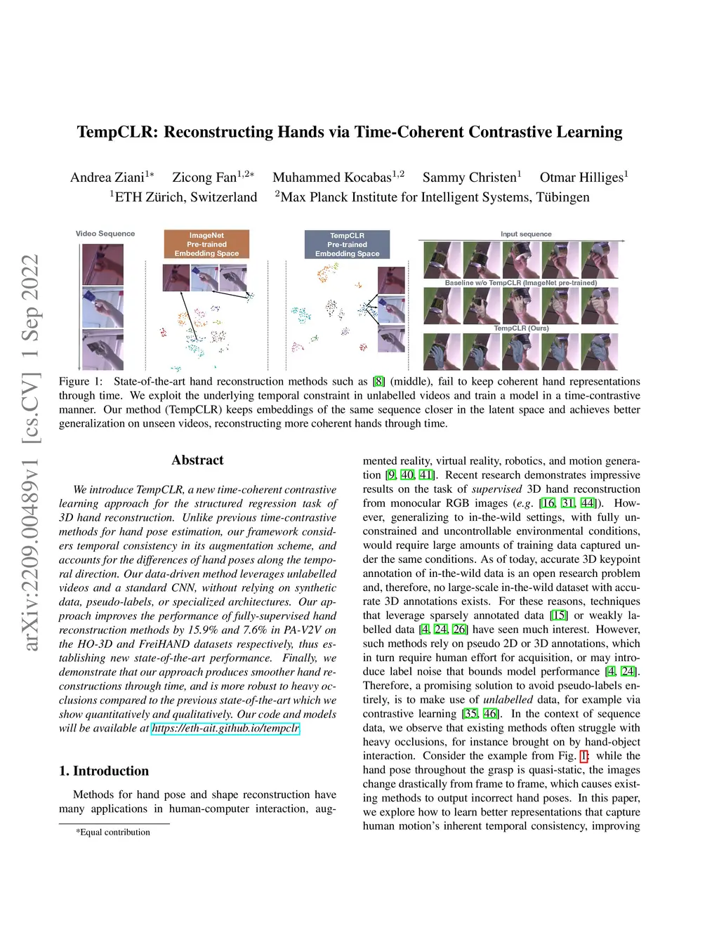 TempCLR: Reconstructing Hands via Time-Coherent Contrastive Learning