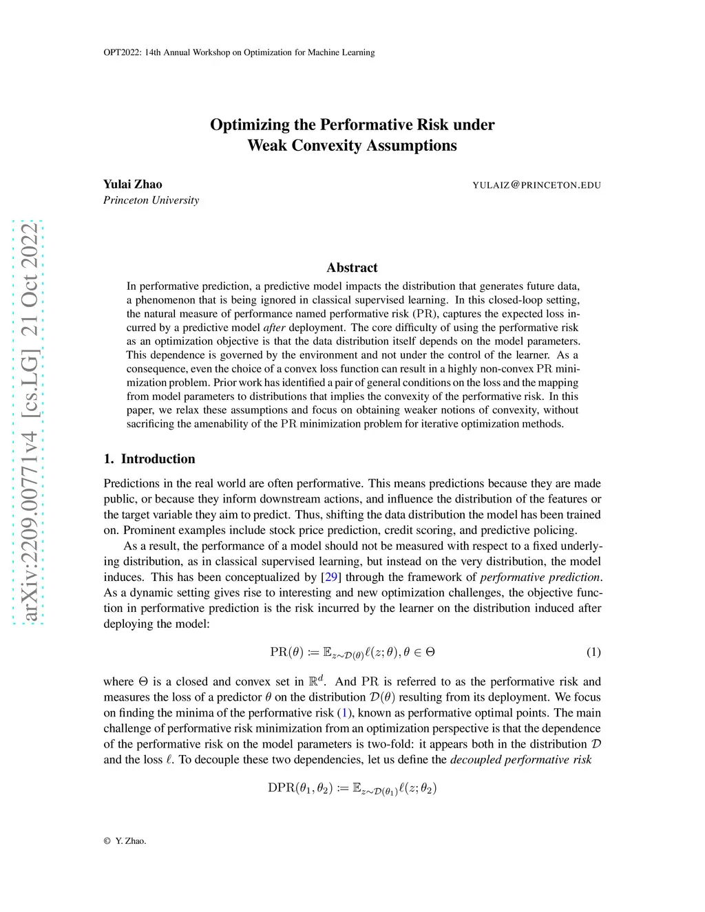 In performative prediction, a predictive model impacts the distribution that generates future data, a phenomenon that is being ignored in classical supervised learning. In this closed-loop setting, the natural measure of performance named performative risk (), captures the expected loss incurred by a predictive model \emph{after} deployment. The core difficulty of using the performative risk as an optimization objective is that the data distribution itself depends on the model parameters. This dependence is governed by the environment and not under the control of the learner. As a consequence, even the choice of a convex loss function can result in a highly non-convex minimization problem. Prior work has identified a pair of general conditions on the loss and the mapping from model parameters to distributions that implies the convexity of the performative risk. In this paper, we relax these assumptions and focus on obtaining weaker notions of convexity, without sacrificing the amenability of the minimization problem for iterative optimization methods.
