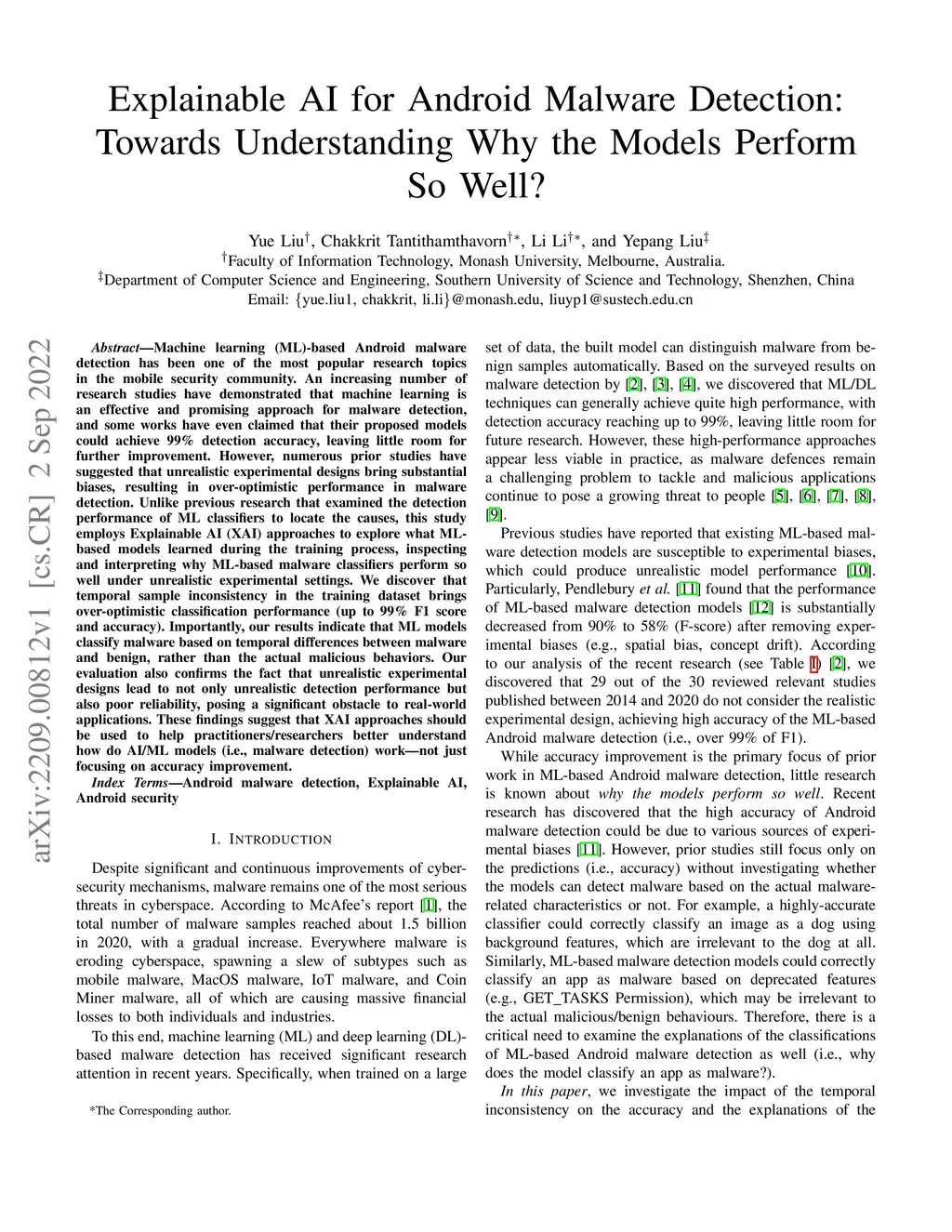 Machine learning (ML)-based Android malware detection has been one of the most popular research topics in the mobile security community. An increasing number of research studies have demonstrated that machine learning is an effective and promising approach for malware detection, and some works have even claimed that their proposed models could achieve 99\% detection accuracy, leaving little room for further improvement. However, numerous prior studies have suggested that unrealistic experimental designs bring substantial biases, resulting in over-optimistic performance in malware detection. Unlike previous research that examined the detection performance of ML classifiers to locate the causes, this study employs Explainable AI (XAI) approaches to explore what ML-based models learned during the training process, inspecting and interpreting why ML-based malware classifiers perform so well under unrealistic experimental settings. We discover that temporal sample inconsistency in the training dataset brings over-optimistic classification performance (up to 99\% F1 score and accuracy). Importantly, our results indicate that ML models classify malware based on temporal differences between malware and benign, rather than the actual malicious behaviors. Our evaluation also confirms the fact that unrealistic experimental designs lead to not only unrealistic detection performance but also poor reliability, posing a significant obstacle to real-world applications. These findings suggest that XAI approaches should be used to help practitioners/researchers better understand how do AI/ML models (i.e., malware detection) work -- not just focusing on accuracy improvement.