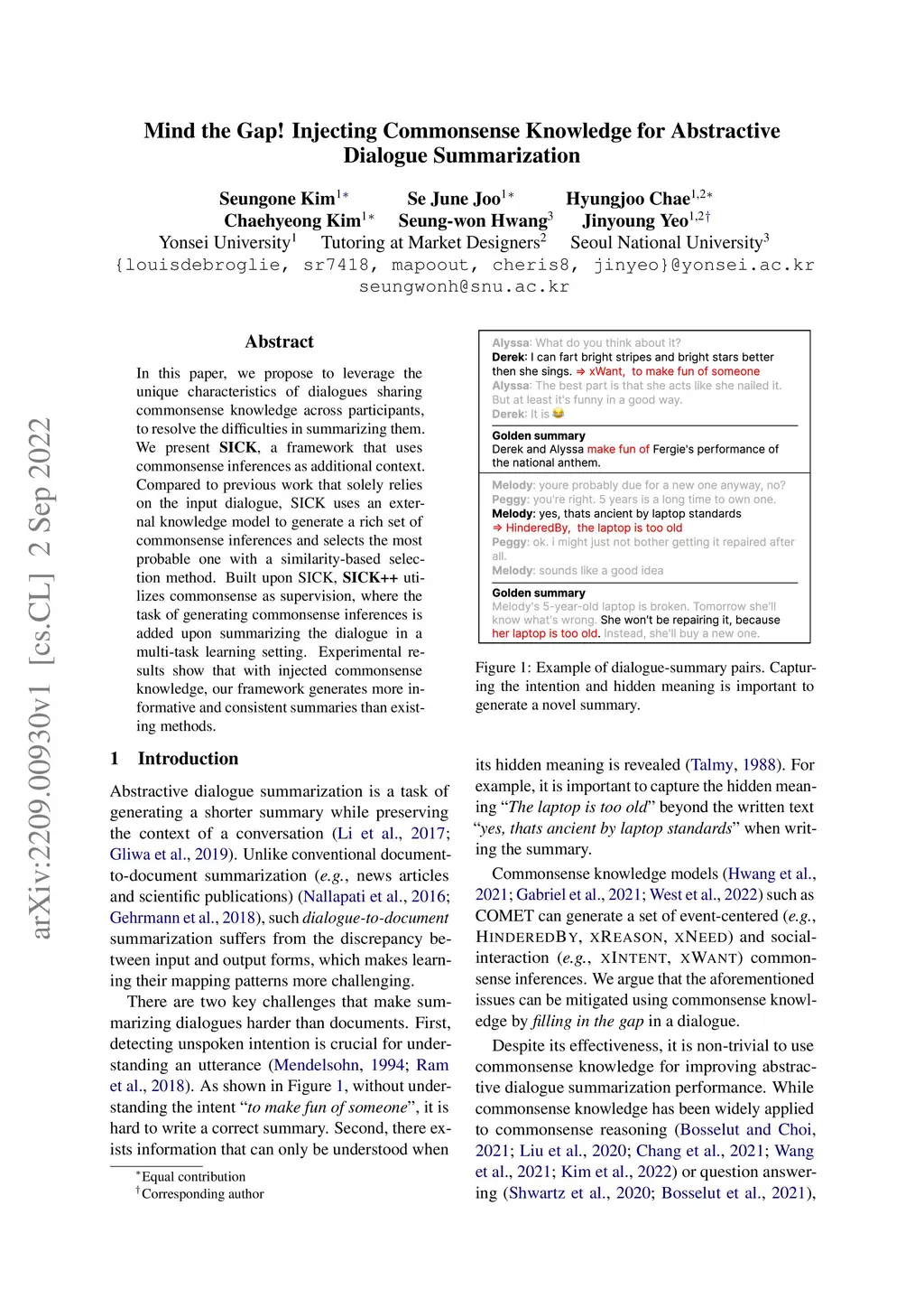 Mind the Gap! Injecting Commonsense Knowledge for Abstractive Dialogue