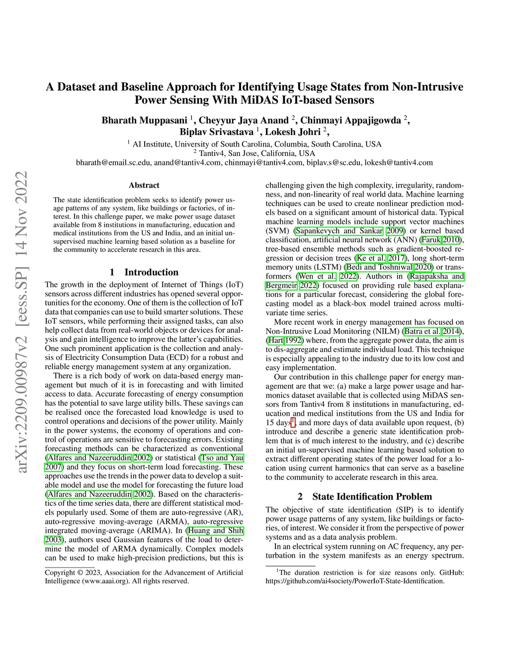 The state identification problem seeks to identify power usage patterns of any system, like buildings or factories, of interest. In this challenge paper, we make power usage dataset available from 8 institutions in manufacturing, education and medical institutions from the US and India, and an initial un-supervised machine learning based solution as a baseline for the community to accelerate research in this area.