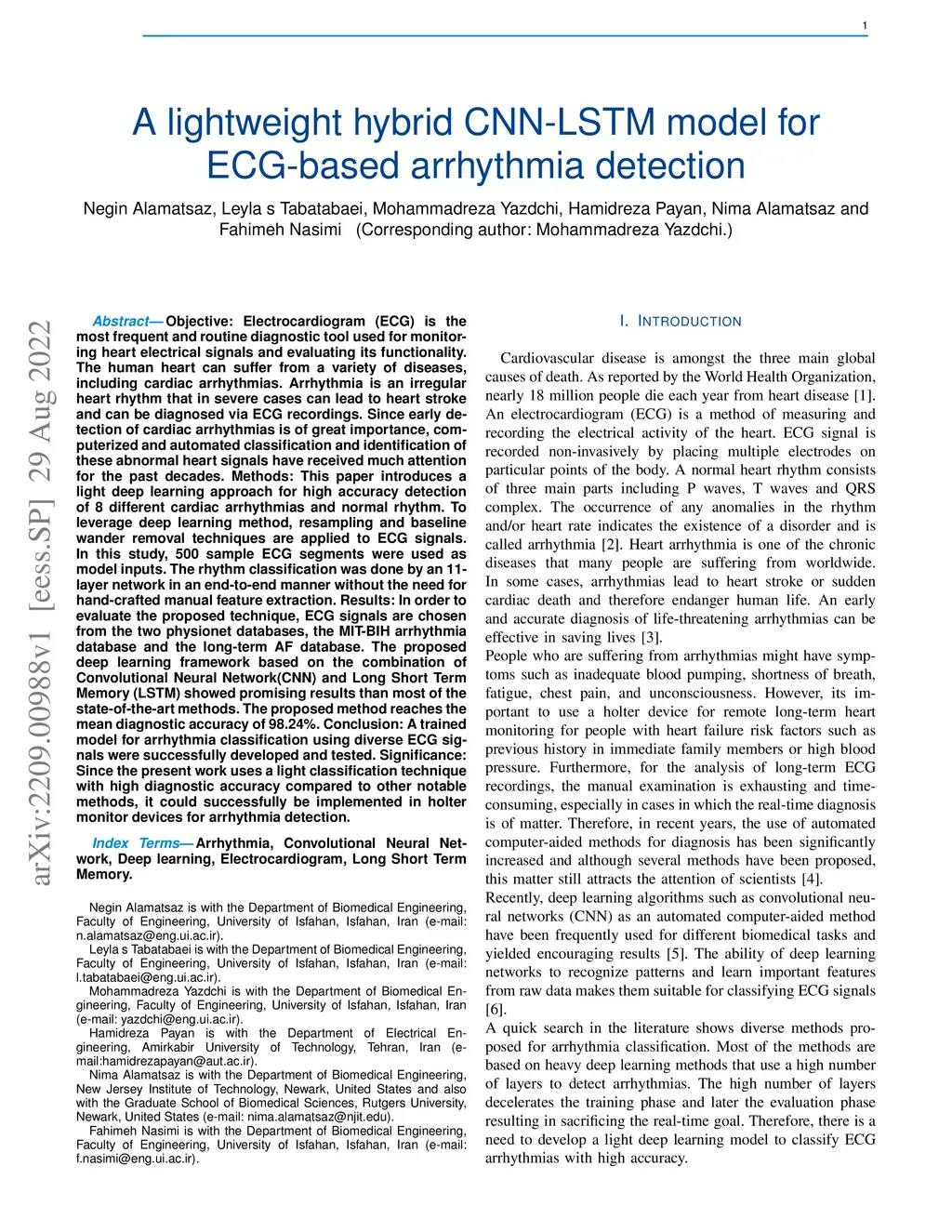 A lightweight hybrid CNN-LSTM model for ECG-based arrhythmia detection