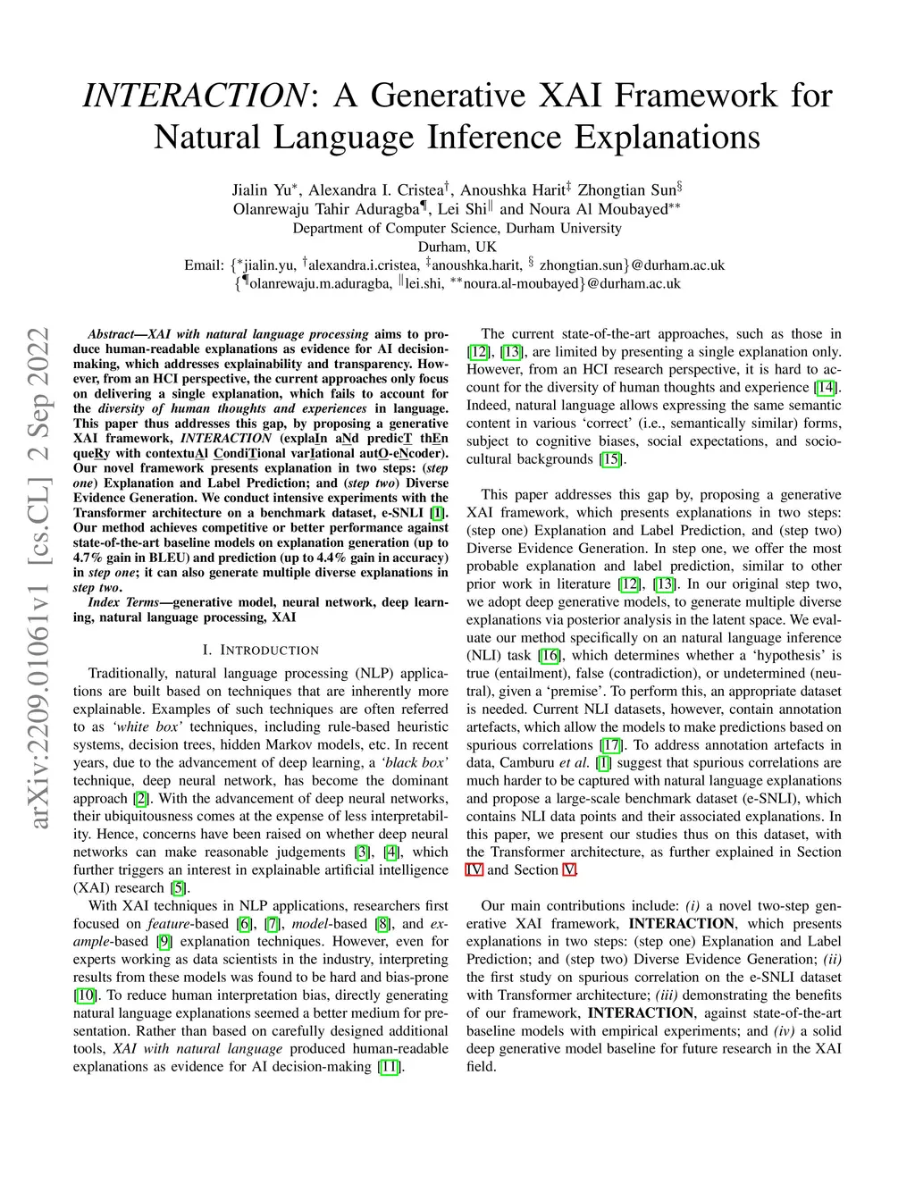 INTERACTION: A Generative XAI Framework for Natural Language Inference