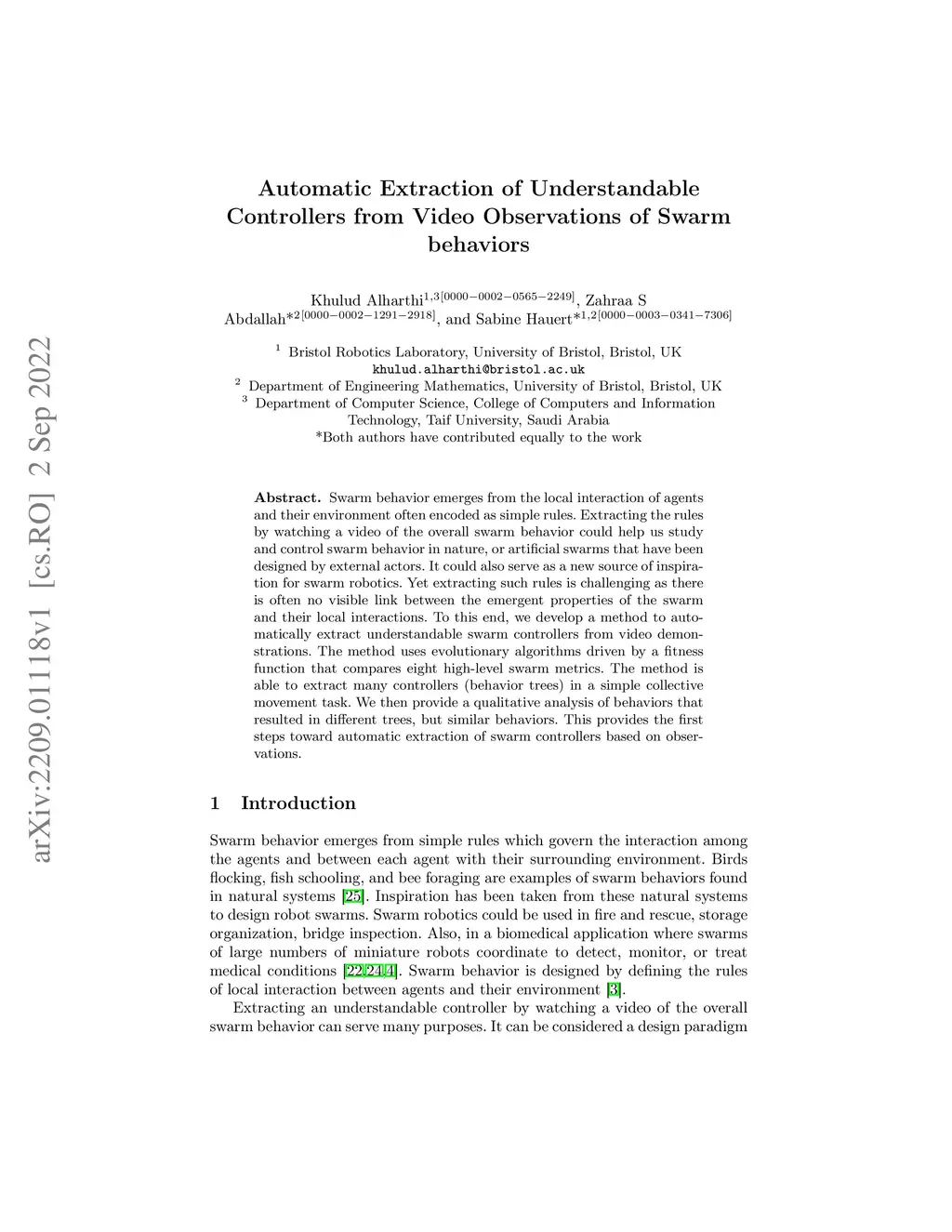 Swarm behavior emerges from the local interaction of agents and their environment often encoded as simple rules. Extracting the rules by watching a video of the overall swarm behavior could help us study and control swarm behavior in nature, or artificial swarms that have been designed by external actors. It could also serve as a new source of inspiration for swarm robotics. Yet extracting such rules is challenging as there is often no visible link between the emergent properties of the swarm and their local interactions. To this end, we develop a method to automatically extract understandable swarm controllers from video demonstrations. The method uses evolutionary algorithms driven by a fitness function that compares eight high-level swarm metrics. The method is able to extract many controllers (behavior trees) in a simple collective movement task. We then provide a qualitative analysis of behaviors that resulted in different trees, but similar behaviors. This provides the first steps toward automatic extraction of swarm controllers based on observations.