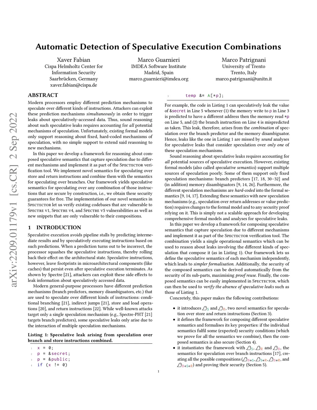 Modern processors employ different prediction mechanisms to speculate over different kinds of instructions. Attackers can exploit these prediction mechanisms simultaneously in order to trigger leaks about speculatively-accessed data. Thus, sound reasoning about such speculative leaks requires accounting for all potential mechanisms of speculation. Unfortunately, existing formal models only support reasoning about fixed, hard-coded mechanisms of speculation, with no simple support to extend said reasoning to new mechanisms. In this paper we develop a framework for reasoning about composed speculative semantics that capture speculation due to different mechanisms and implement it as part of the Spectector verification tool. We implement novel semantics for speculating over store and return instructions and combine them with the semantics for speculating over branches. Our framework yields speculative semantics for speculating over any combination of those instructions that are secure by construction, i.e., we obtain these security guarantees for free. The implementation of our novel semantics in Spectector let us verify existing codebases that are vulnerable to Spectre v1, Spectre v4, and Spectre v5 vulnerabilities as well as new snippets that are only vulnerable to their compositions.