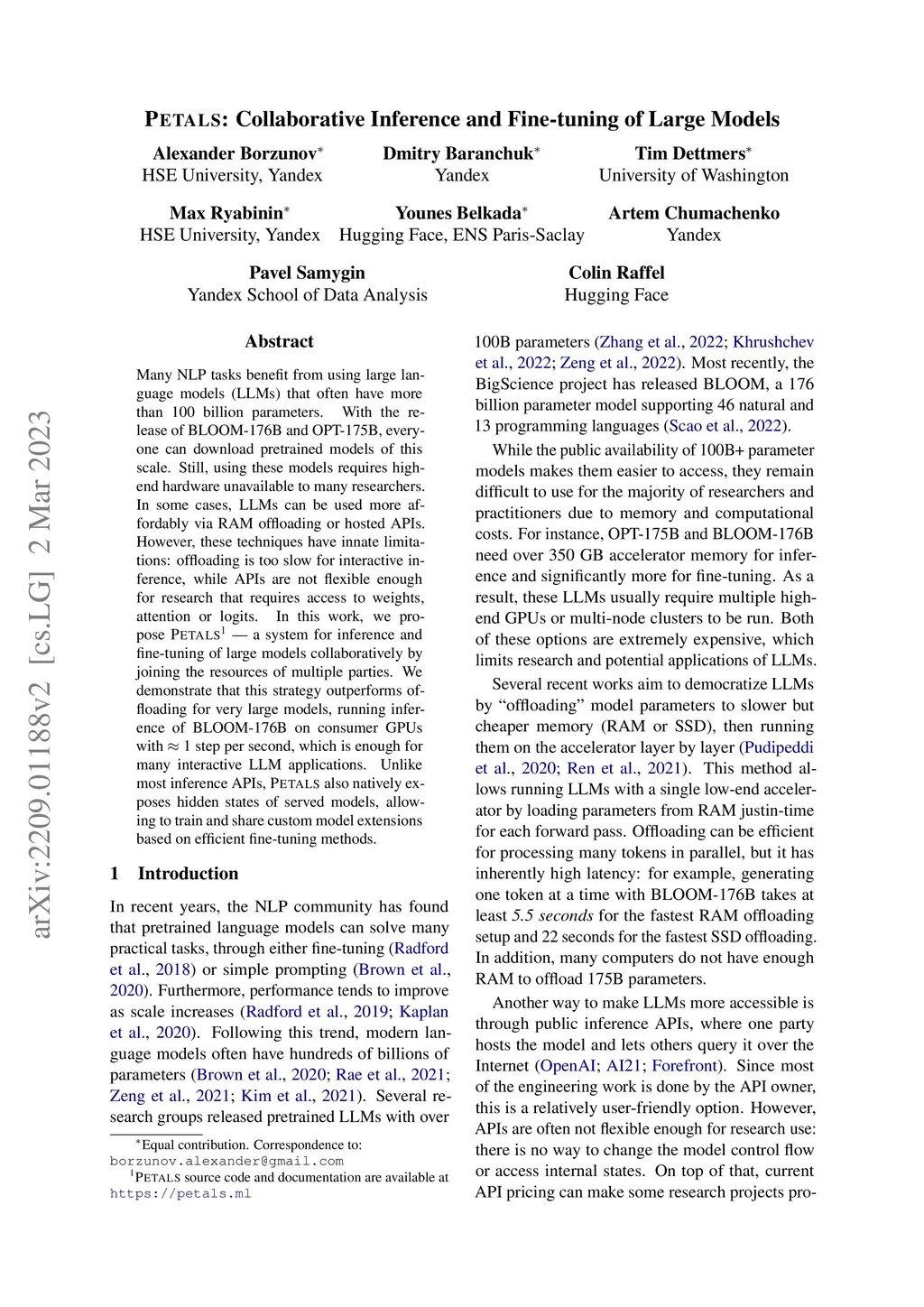 Petals: Collaborative Inference and Fine-tuning of Large Models