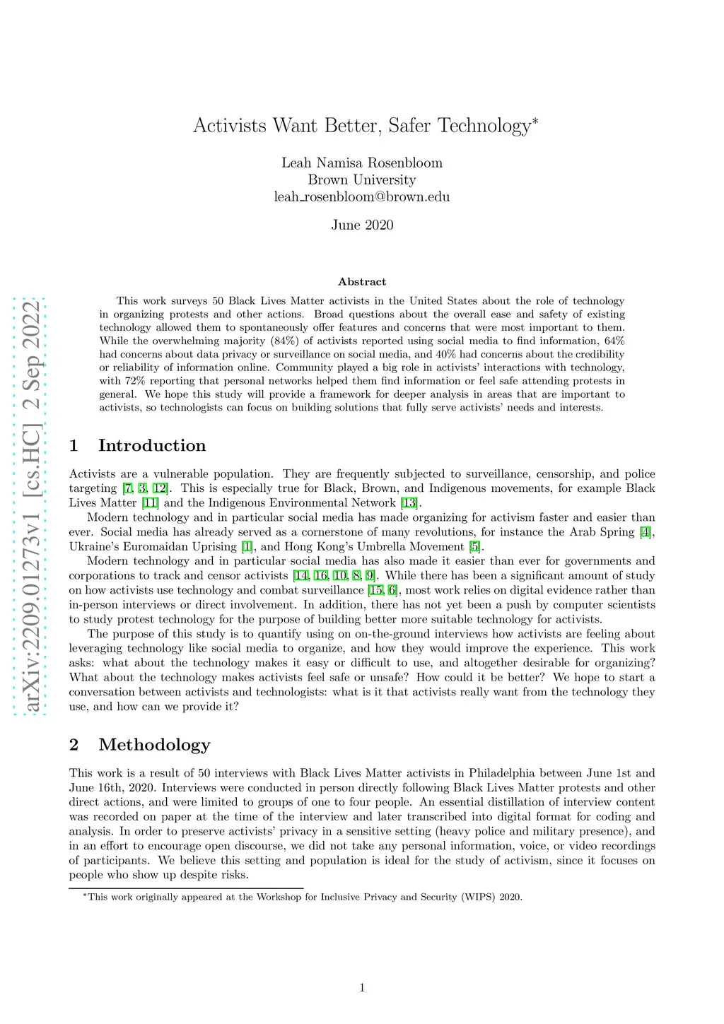 This work surveys 50 Black Lives Matter activists in the United States about the role of technology in organizing protests and other actions. Broad questions about the overall ease and safety of existing technology allowed them to spontaneously offer features and concerns that were most important to them. While the overwhelming majority (84%) of activists reported using social media to find information, 64% had concerns about data privacy or surveillance on social media, and 40% had concerns about the credibility or reliability of information online. Community played a big role in activists' interactions with technology, with 72% reporting that personal networks helped them find information or feel safe attending protests in general. We hope this study will provide a framework for deeper analysis in areas that are important to activists, so technologists can focus on building solutions that fully serve activists' needs and interests.