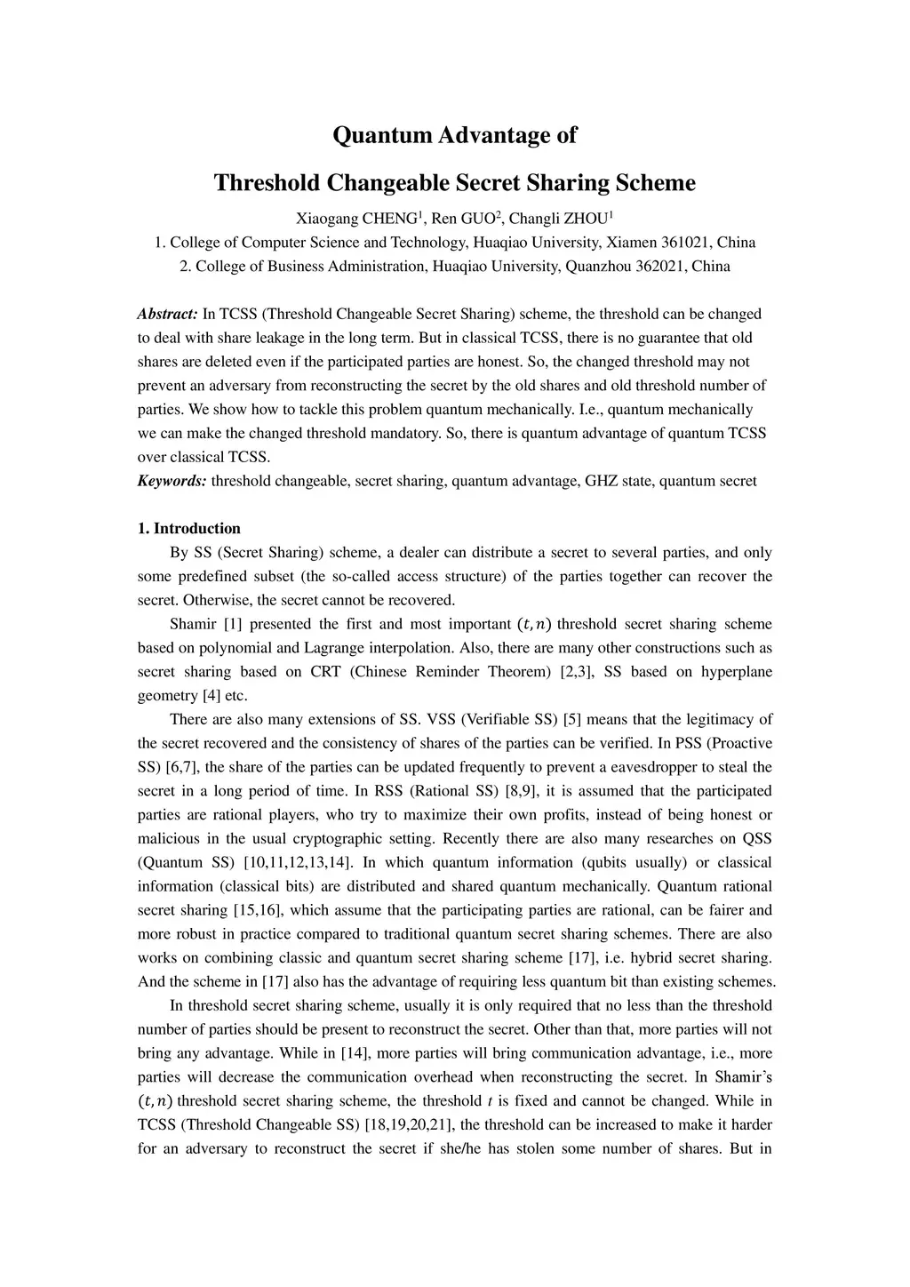 Quantum Advantage of Threshold Changeable Secret Sharing Scheme