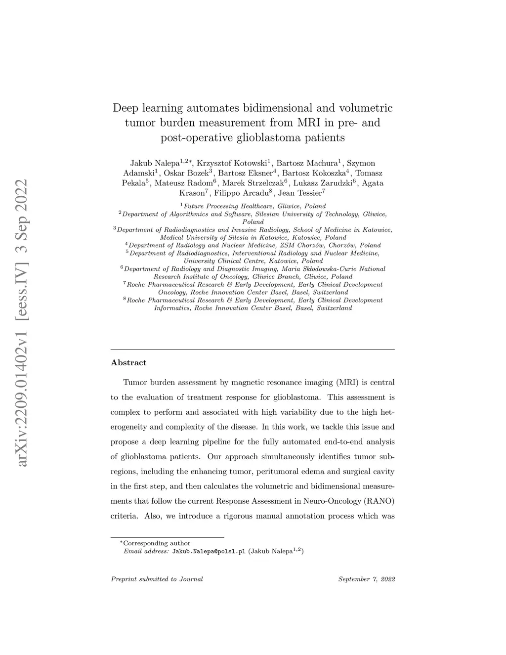 Deep learning automates bidimensional and volumetric tumor burden