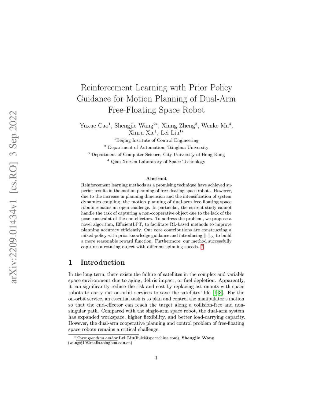 Reinforcement learning methods as a promising technique have achieved superior results in the motion planning of free-floating space robots. However, due to the increase in planning dimension and the intensification of system dynamics coupling, the motion planning of dual-arm free-floating space robots remains an open challenge. In particular, the current study cannot handle the task of capturing a non-cooperative object due to the lack of the pose constraint of the end-effectors. To address the problem, we propose a novel algorithm, EfficientLPT, to facilitate RL-based methods to improve planning accuracy efficiently. Our core contributions are constructing a mixed policy with prior knowledge guidance and introducing infinite norm to build a more reasonable reward function. Furthermore, our method successfully captures a rotating object with different spinning speeds.