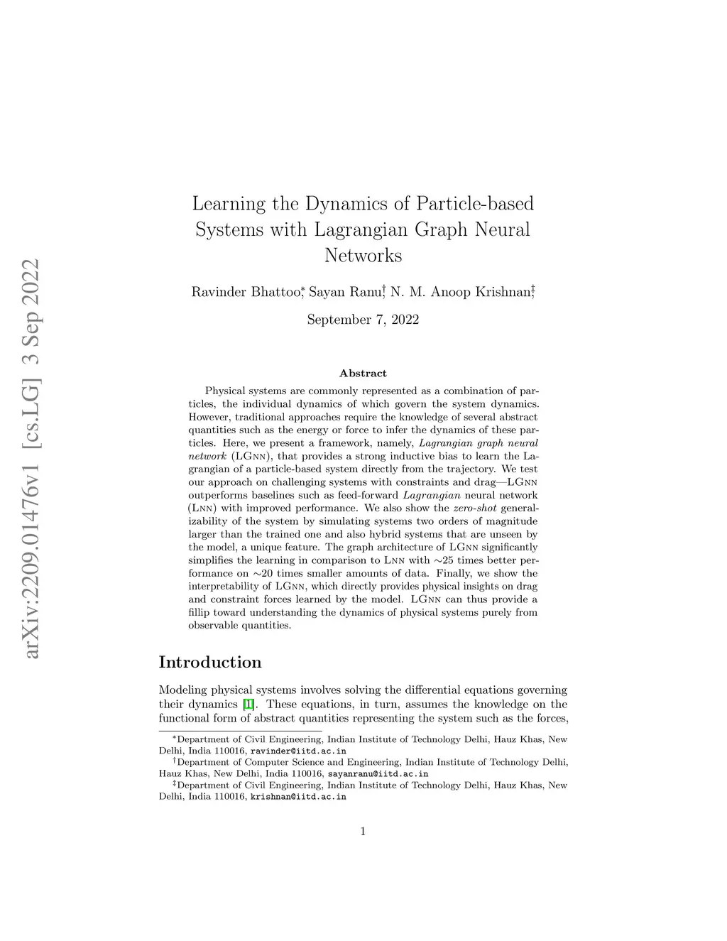 Learning the Dynamics of Particle-based Systems with Lagrangian Graph