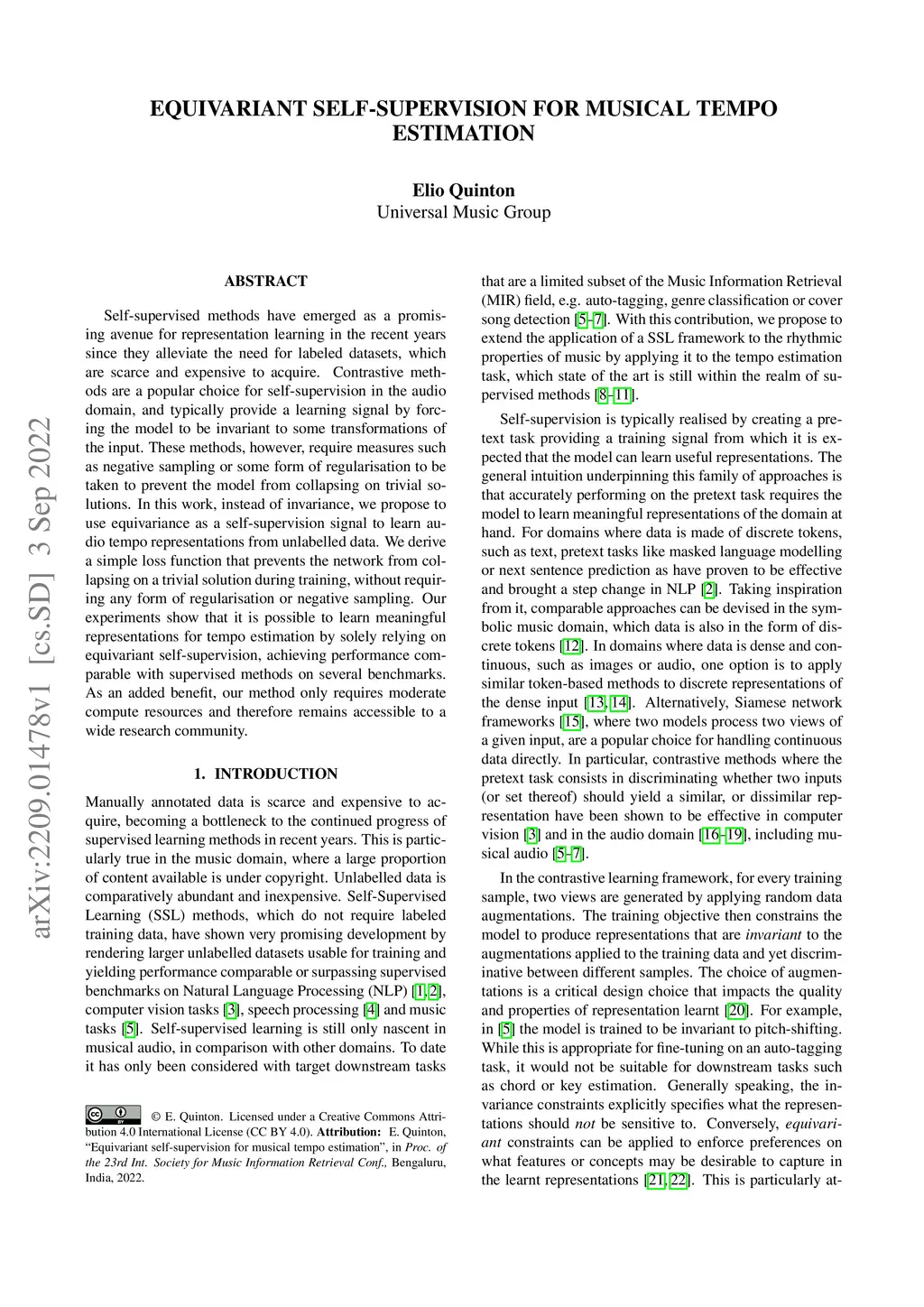 Equivariant Self-Supervision for Musical Tempo Estimation