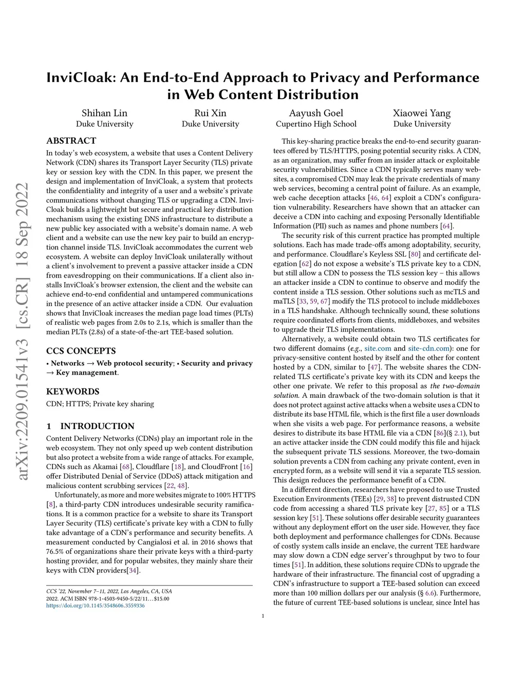 InviCloak: An End-to-End Approach to Privacy and Performance in Web Content Distribution
