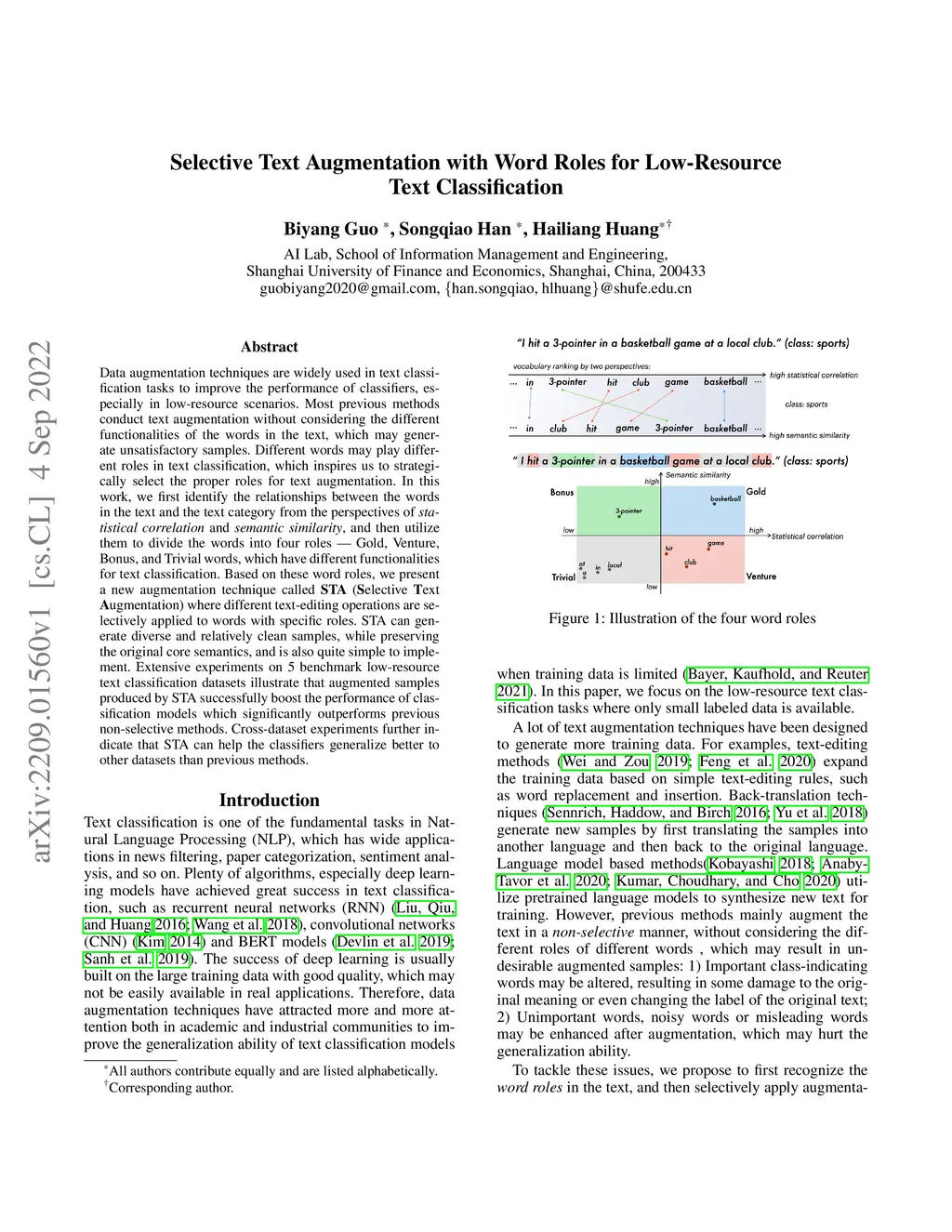 Selective Text Augmentation with Word Roles for Low-Resource Text