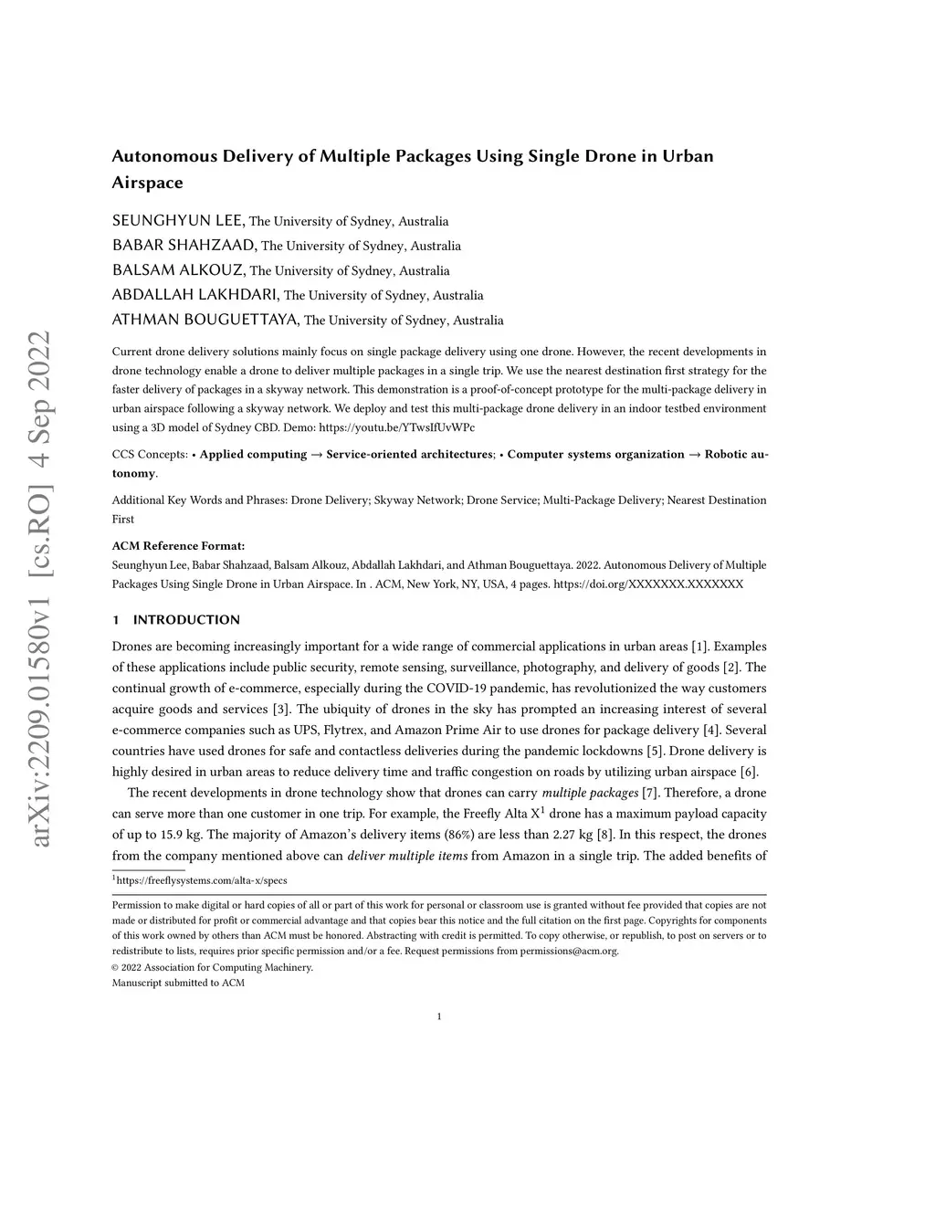 Autonomous Delivery of Multiple Packages Using Single Drone in Urban
