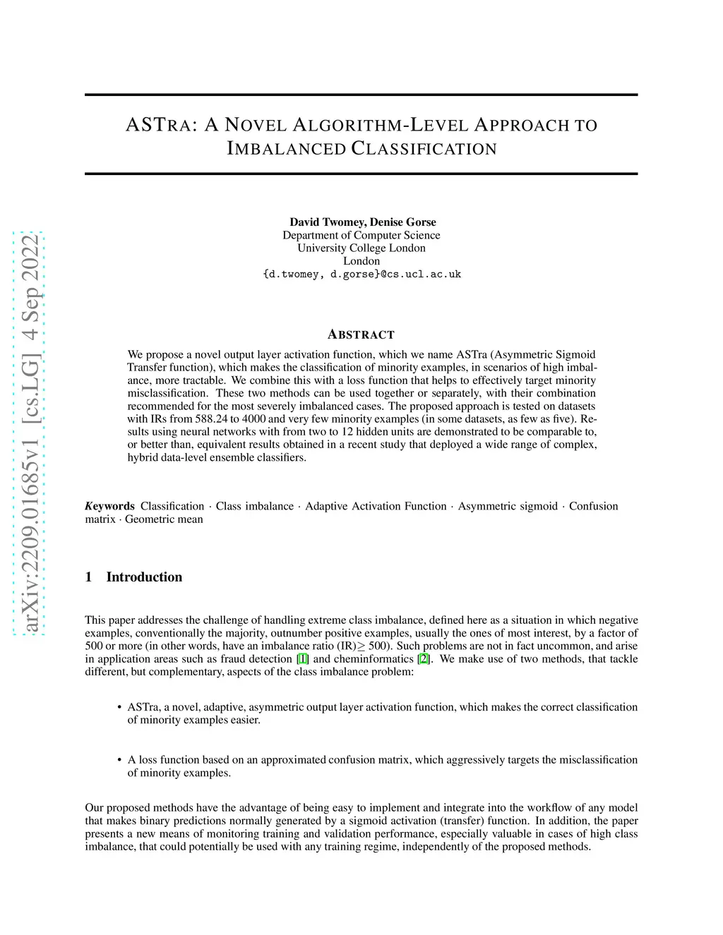 ASTra: A Novel Algorithm-Level Approach to Imbalanced Classification