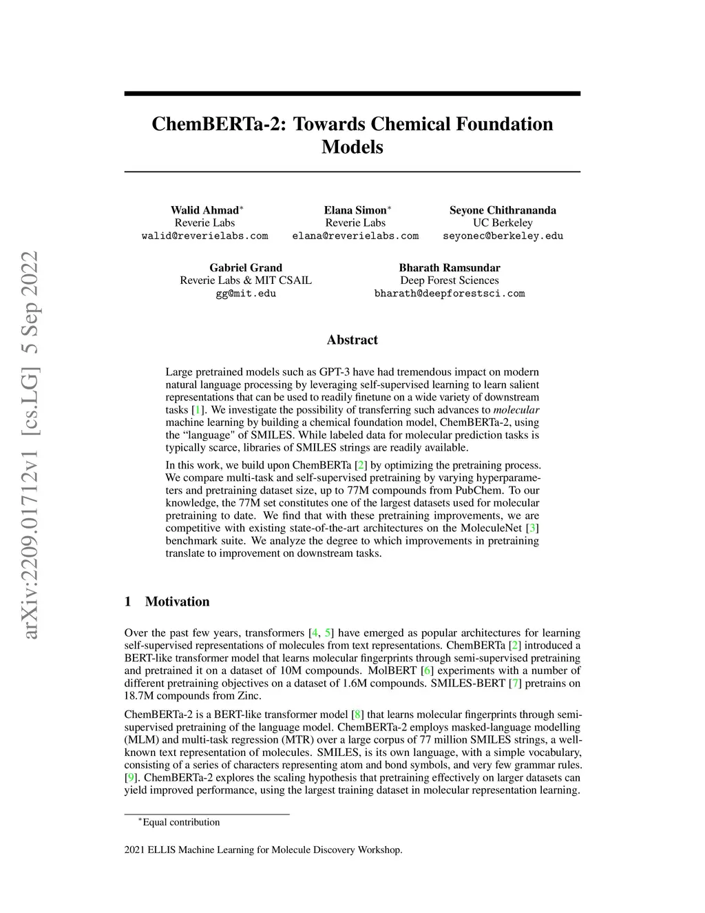 ChemBERTa-2: Towards Chemical Foundation Models
