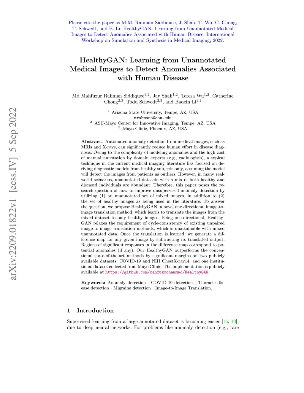 HealthyGAN: Learning from Unannotated Medical Images to Detect Anomalies