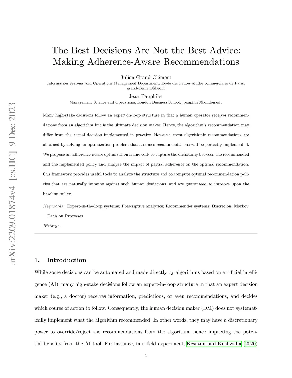 Many high-stake decisions follow an expert-in-loop structure in that a human operator receives recommendations from an algorithm but is the ultimate decision maker. Hence, the algorithm's recommendation may differ from the actual decision implemented in practice. However, most algorithmic recommendations are obtained by solving an optimization problem that assumes recommendations will be perfectly implemented. We propose an adherence-aware optimization framework to capture the dichotomy between the recommended and the implemented policy and analyze the impact of partial adherence on the optimal recommendation. We show that overlooking the partial adherence phenomenon, as is currently being done by most recommendation engines, can lead to arbitrarily severe performance deterioration, compared with both the current human baseline performance and what is expected by the recommendation algorithm. Our framework also provides useful tools to analyze the structure and to compute optimal recommendation policies that are naturally immune against such human deviations, and are guaranteed to improve upon the baseline policy.