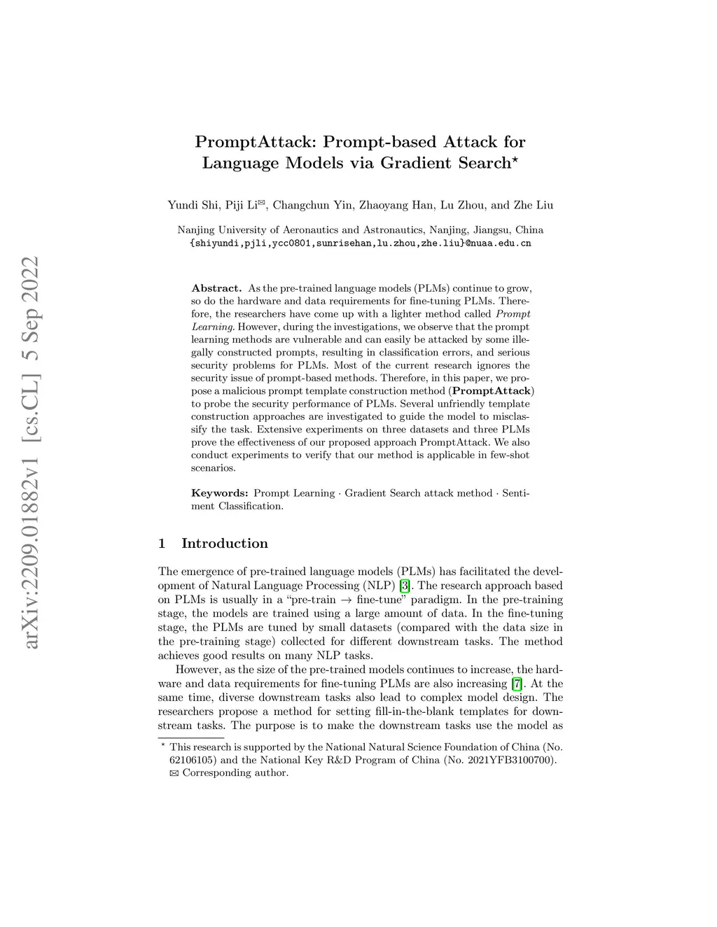 PromptAttack: Prompt-based Attack for Language Models via Gradient