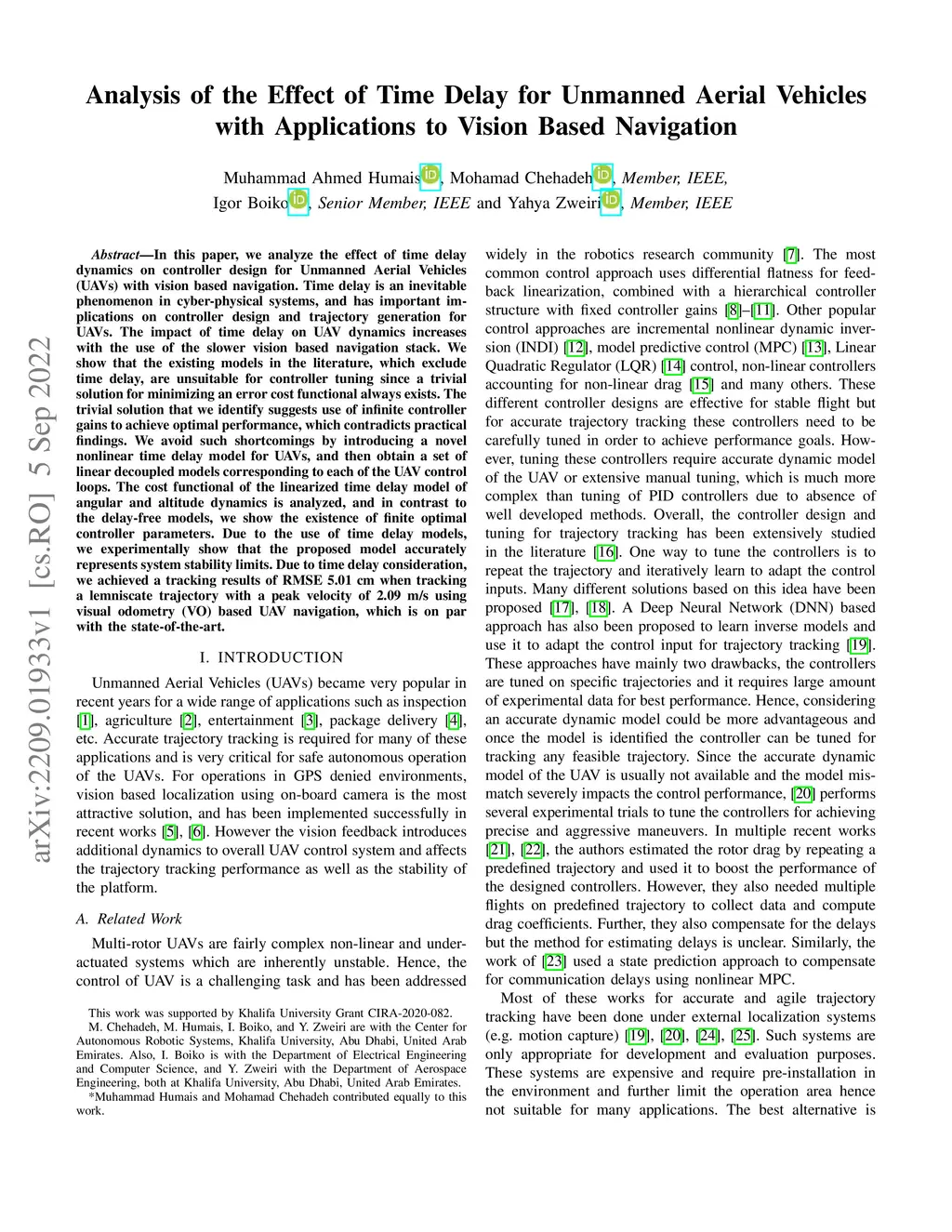 Analysis of the Effect of Time Delay for Unmanned Aerial Vehicles with
