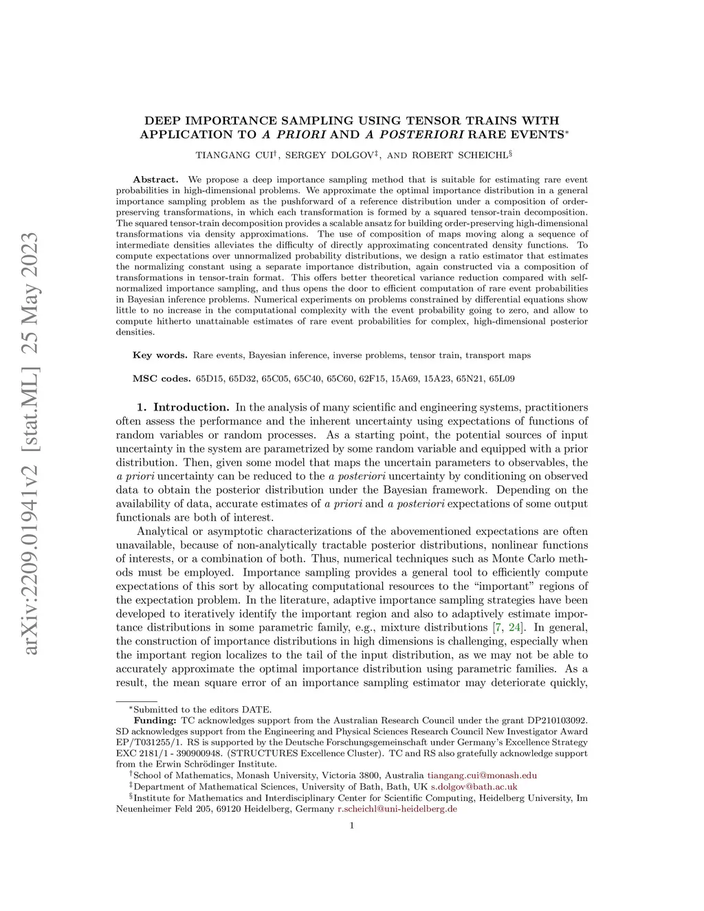 We propose a deep importance sampling method that is suitable for estimating rare event probabilities in high-dimensional problems. We approximate the optimal importance distribution in a general importance sampling problem as the pushforward of a reference distribution under a composition of order-preserving transformations, in which each transformation is formed by a squared tensor-train decomposition. The squared tensor-train decomposition provides a scalable ansatz for building order-preserving high-dimensional transformations via density approximations. The use of composition of maps moving along a sequence of bridging densities alleviates the difficulty of directly approximating concentrated density functions. To compute expectations over unnormalized probability distributions, we design a ratio estimator that estimates the normalizing constant using a separate importance distribution, again constructed via a composition of transformations in tensor-train format. This offers better theoretical variance reduction compared with self-normalized importance sampling, and thus opens the door to efficient computation of rare event probabilities in Bayesian inference problems. Numerical experiments on problems constrained by differential equations show little to no increase in the computational complexity with the event probability going to zero, and allow to compute hitherto unattainable estimates of rare event probabilities for complex, high-dimensional posterior densities.
