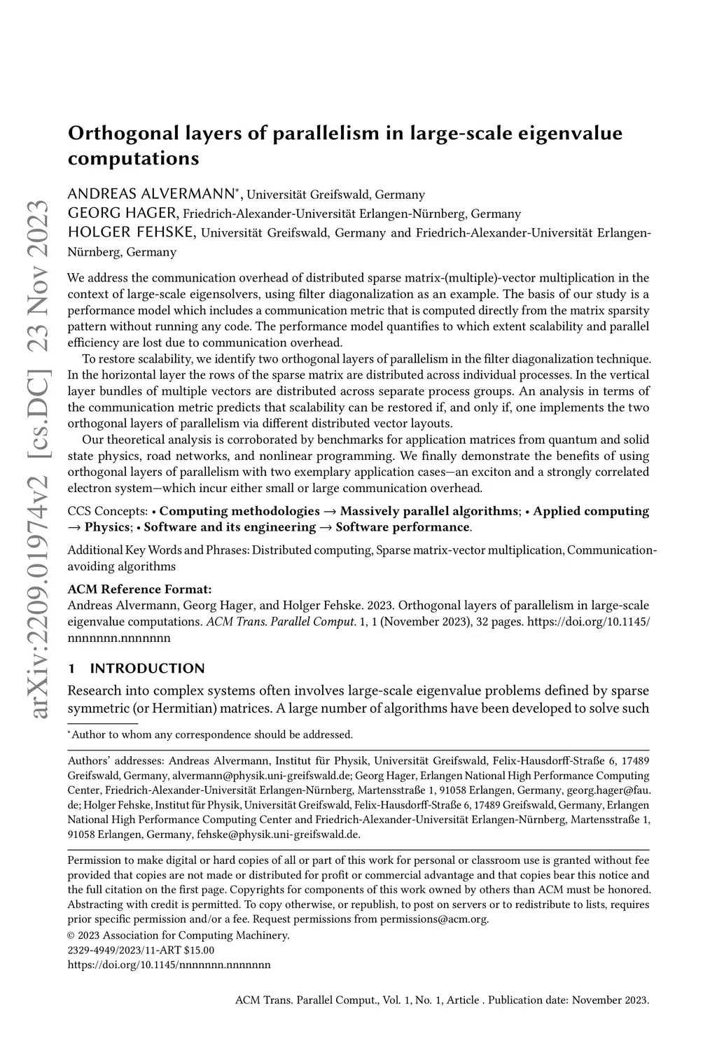 Orthogonal layers of parallelism in large-scale eigenvalue computations