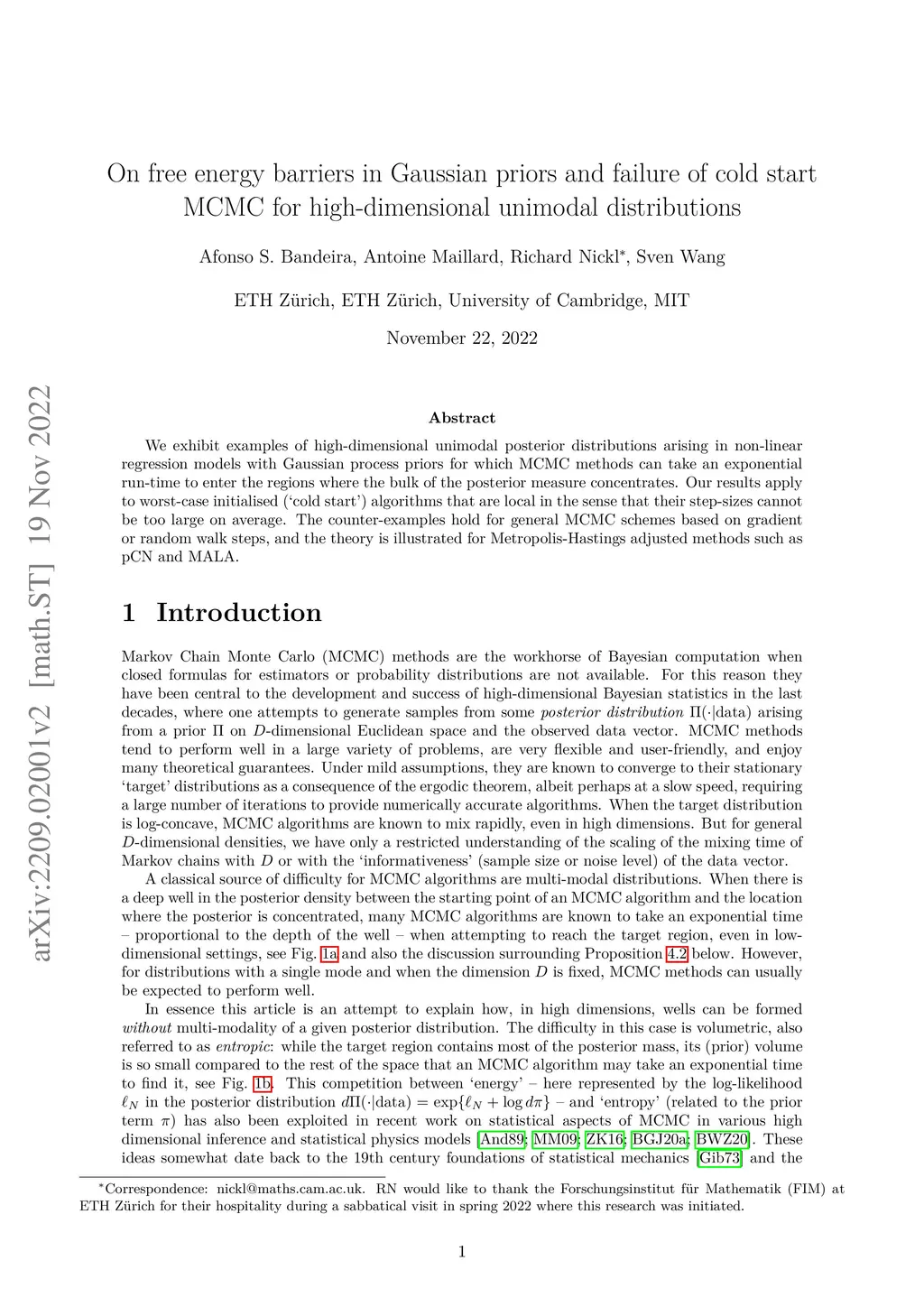 We exhibit examples of high-dimensional unimodal posterior distributions arising in non-linear regression models with Gaussian process priors for which worst-case (`cold start') initialised MCMC methods typically take an exponential run-time to enter the regions where the bulk of the posterior measure concentrates. The counter-examples hold for general MCMC schemes based on gradient or random walk steps, and the theory is illustrated for Metropolis-Hastings adjusted methods such as pCN and MALA.