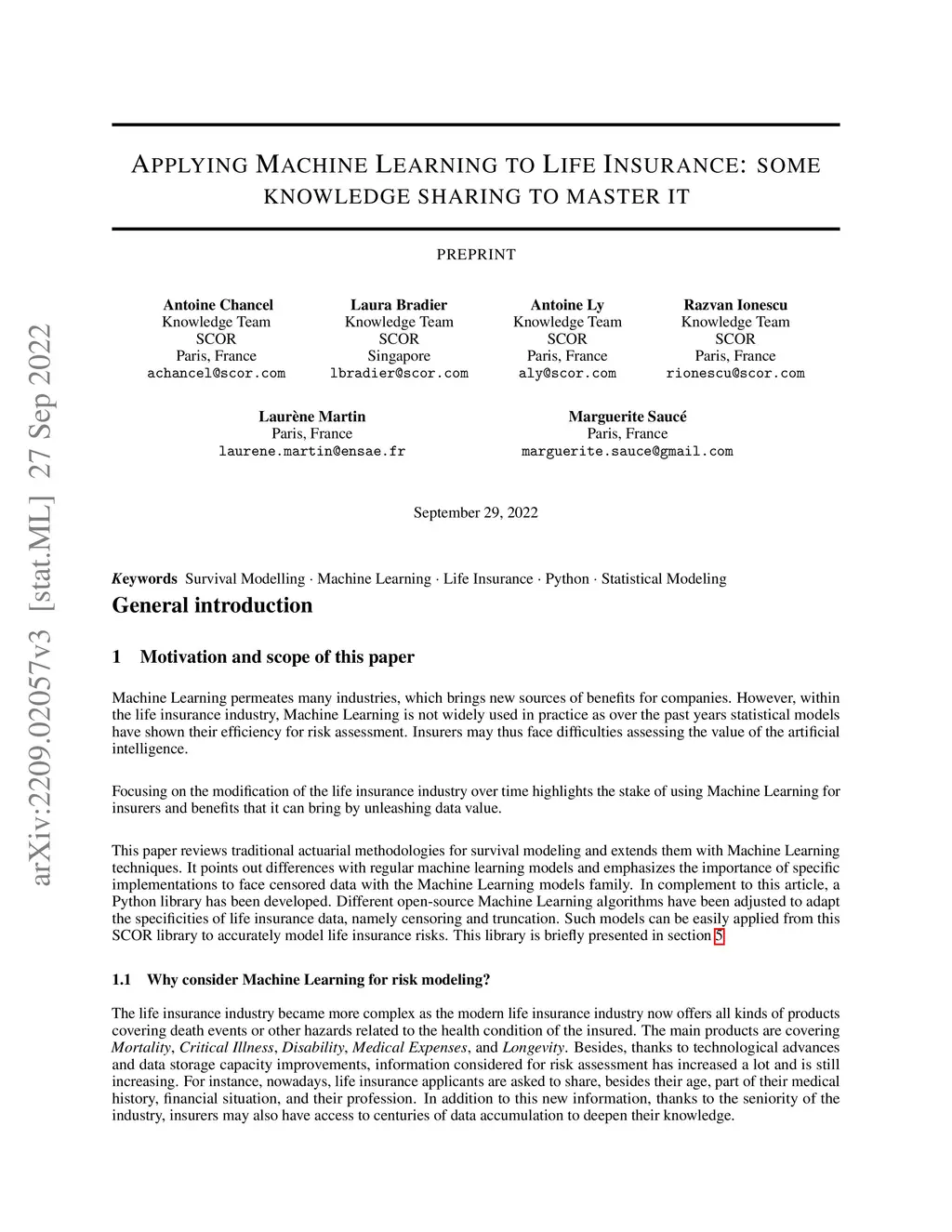 Machine Learning permeates many industries, which brings new source of benefits for companies. However within the life insurance industry, Machine Learning is not widely used in practice as over the past years statistical models have shown their efficiency for risk assessment. Thus insurers may face difficulties to assess the value of the artificial intelligence. Focusing on the modification of the life insurance industry over time highlights the stake of using Machine Learning for insurers and benefits that it can bring by unleashing data value. This paper reviews traditional actuarial methodologies for survival modeling and extends them with Machine Learning techniques. It points out differences with regular machine learning models and emphasizes importance of specific implementations to face censored data with machine learning models family. In complement to this article, a Python library has been developed. Different open-source Machine Learning algorithms have been adjusted to adapt the specificities of life insurance data, namely censoring and truncation. Such models can be easily applied from this SCOR library to accurately model life insurance risks.