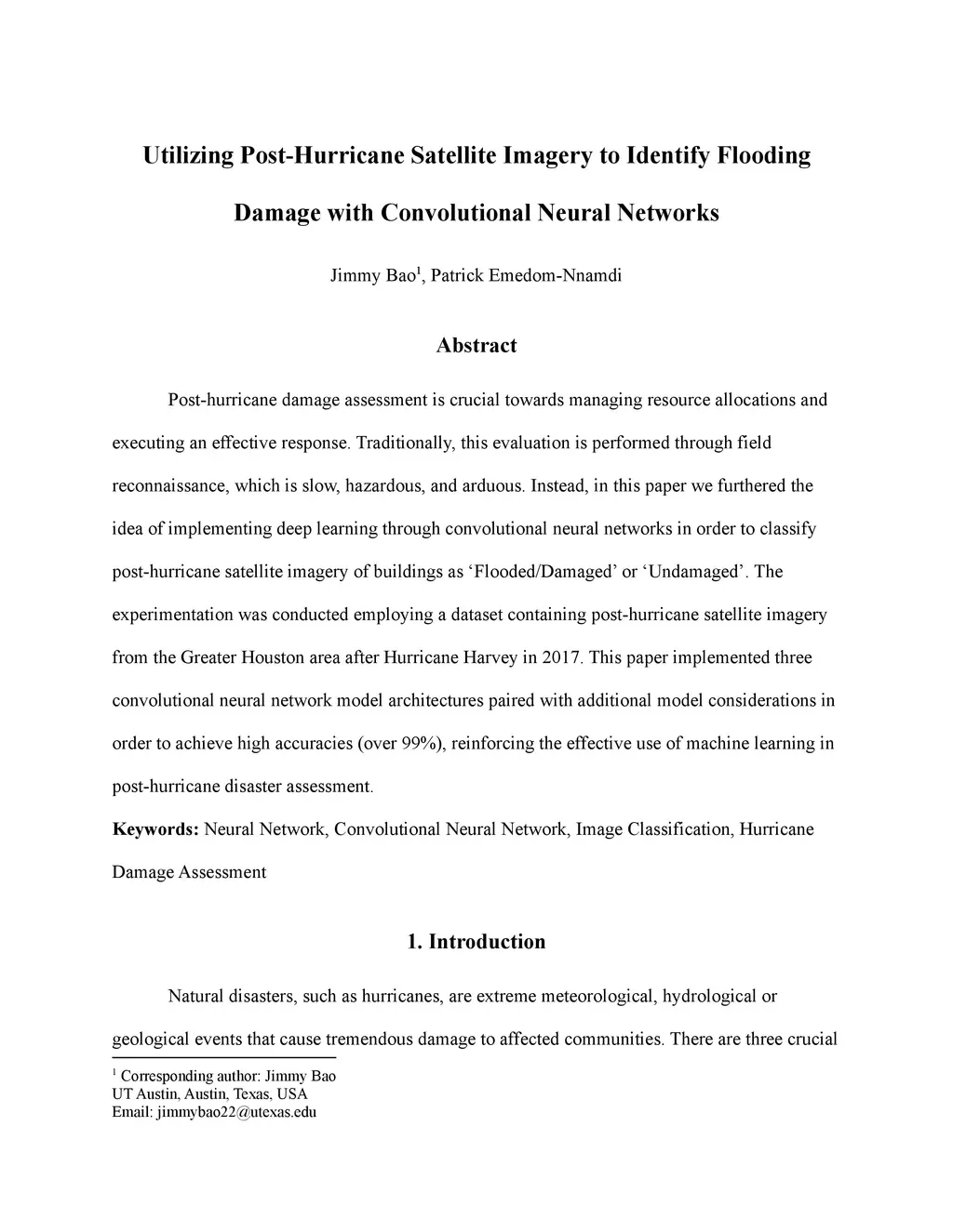 Utilizing Post-Hurricane Satellite Imagery to Identify Flooding Damage