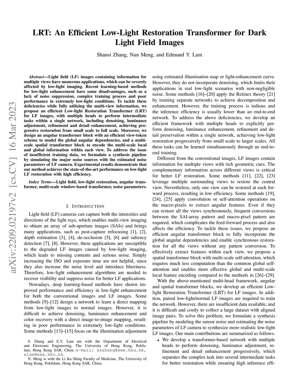 LRT: An Efficient Low-Light Restoration Transformer for Dark Light Field
