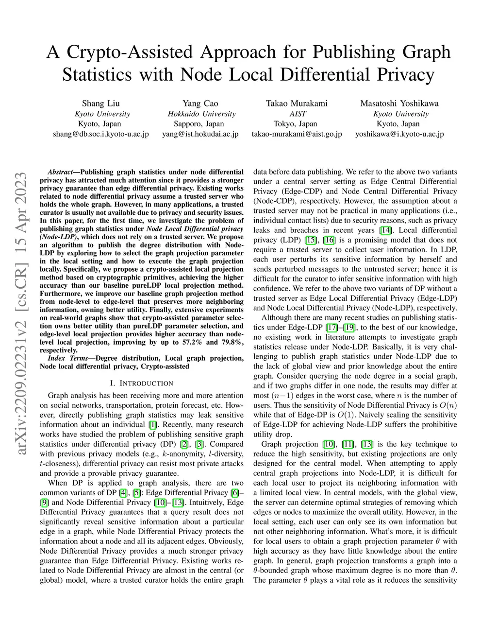A Crypto-Assisted Approach for Publishing Graph Statistics with Node