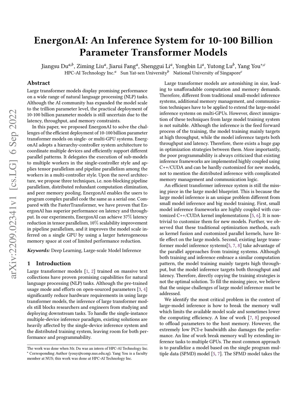 EnergonAI: An Inference System for 10-100 Billion Parameter Transformer