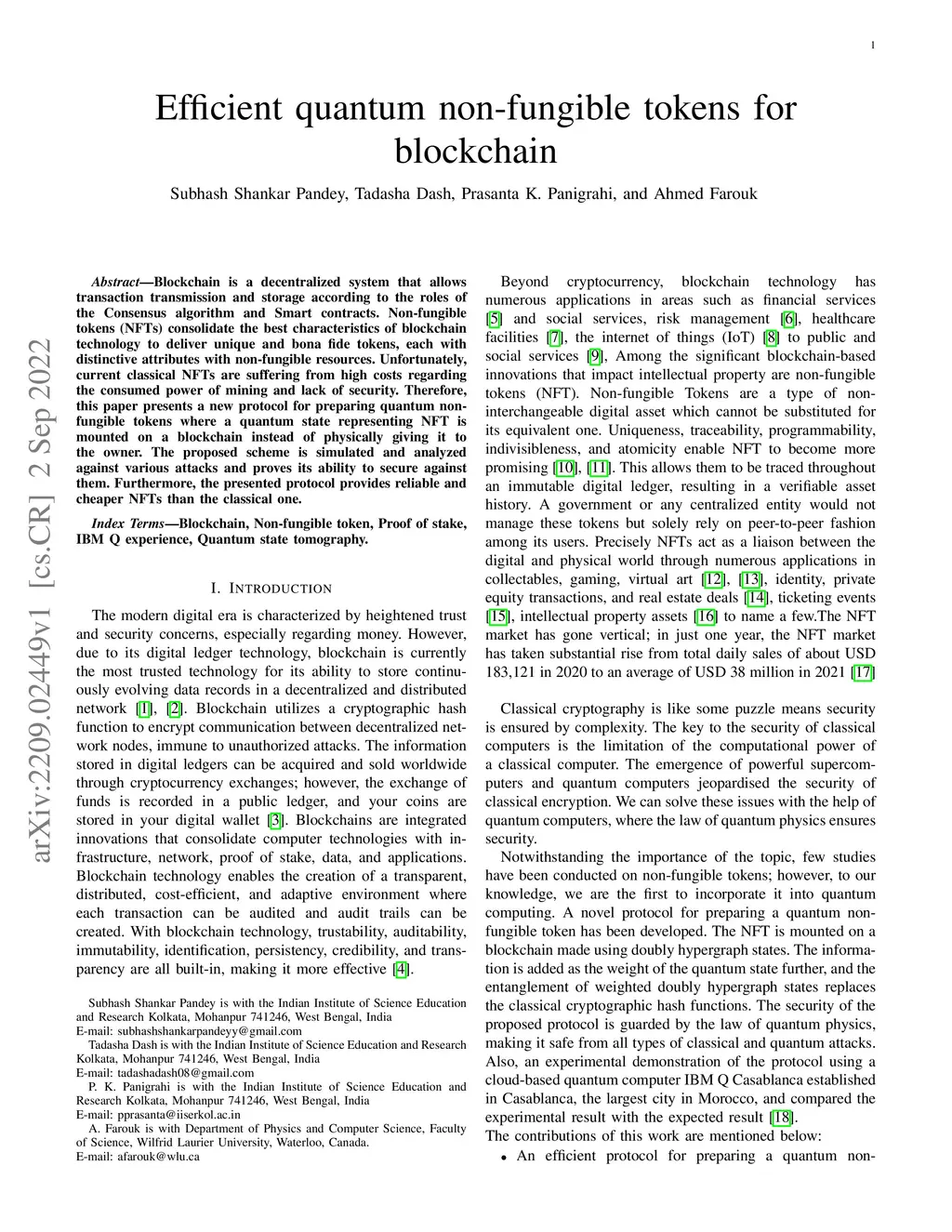 Blockchain is a decentralized system that allows transaction transmission and storage according to the roles of the Consensus algorithm and Smart contracts. Non-fungible tokens (NFTs) consolidate the best characteristics of blockchain technology to deliver unique and bona fide tokens, each with distinctive attributes with non-fungible resources. Unfortunately, current classical NFTs are suffering from high costs regarding the consumed power of mining and lack of security. Therefore, this paper presents a new protocol for preparing quantum non-fungible tokens where a quantum state representing NFT is mounted on a blockchain instead of physically giving it to the owner. The proposed scheme is simulated and analyzed against various attacks and proves its ability to secure against them. Furthermore, the presented protocol provides reliable and cheaper NFTs than the classical one.