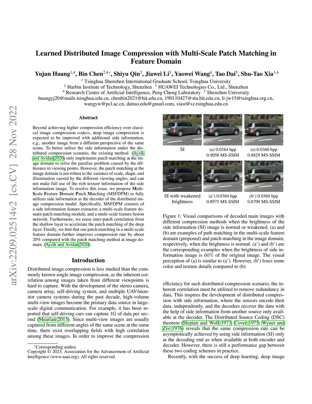 Learned Distributed Image Compression with Multi-Scale Patch Matching in