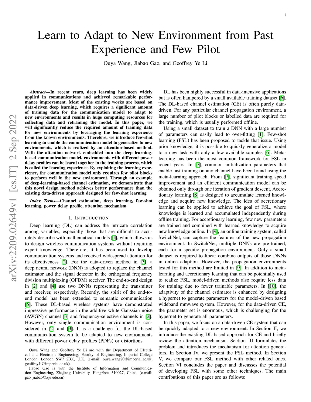 Learn to Adapt to New Environment from Past Experience and Few Pilot