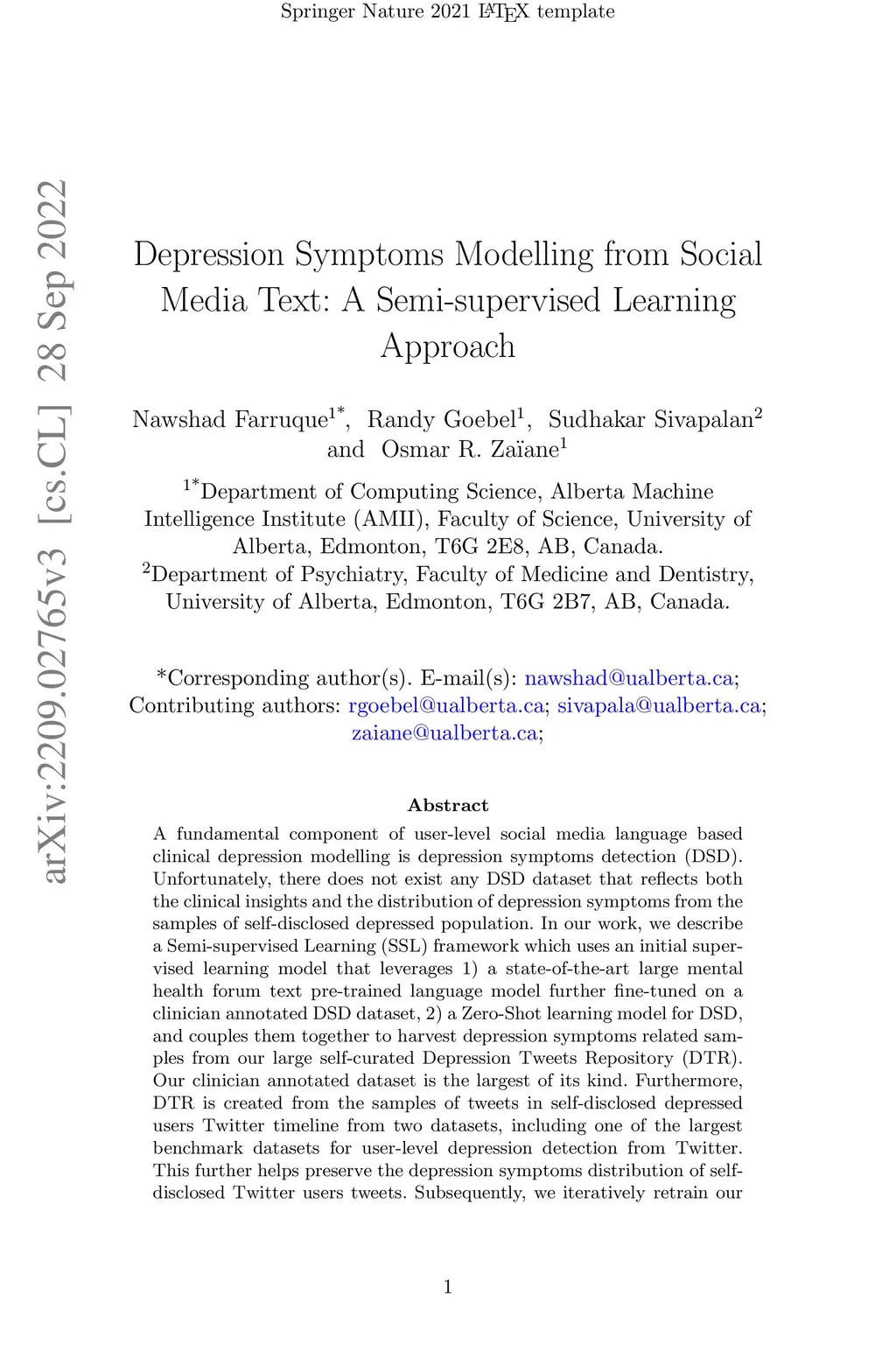 Depression Symptoms Modelling from Social Media Text: A Semi-supervised