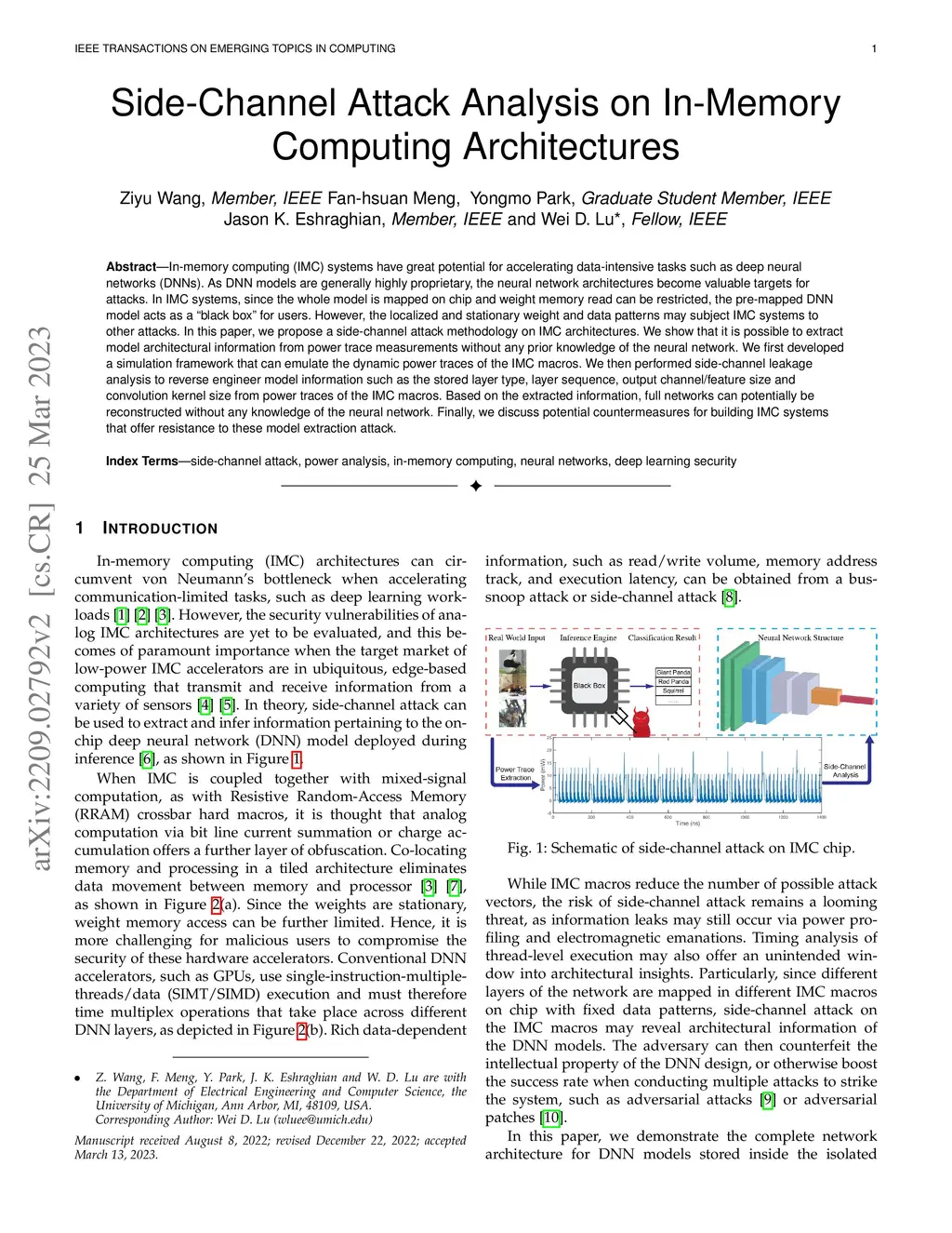 Side-channel attack analysis on in-memory computing architectures