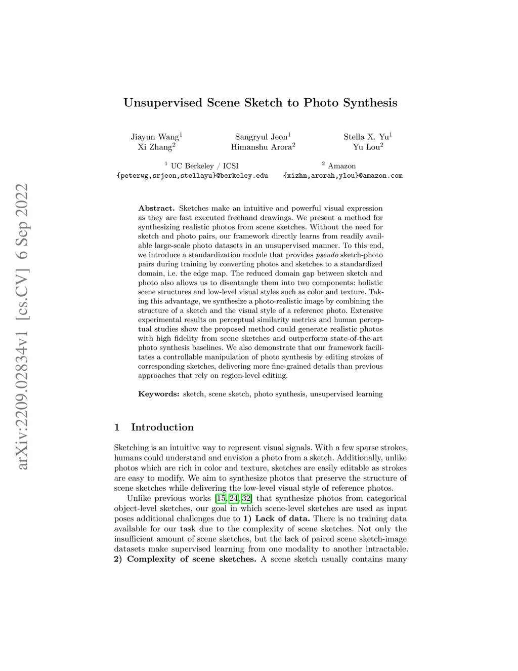 Unsupervised Scene Sketch to Photo Synthesis